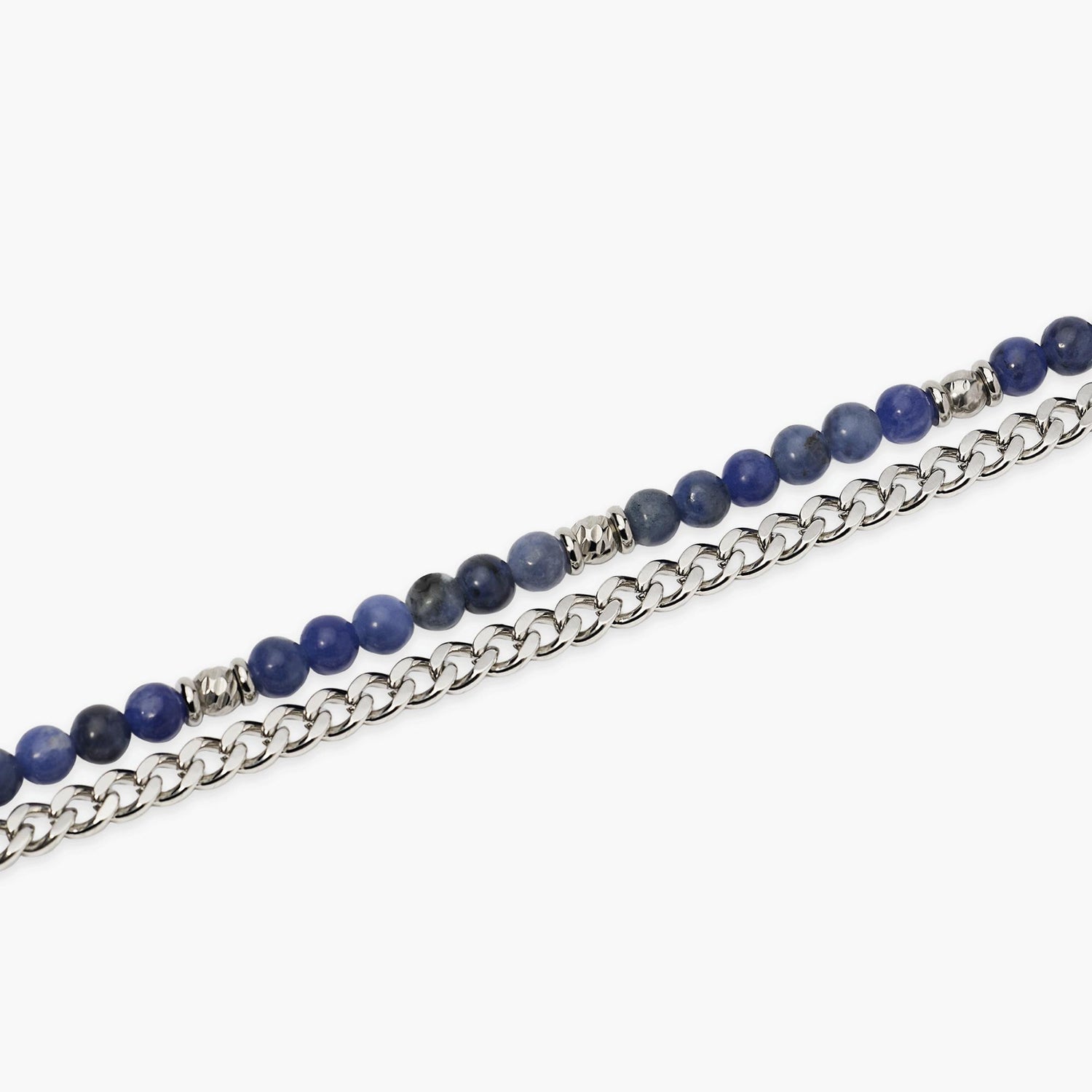 KIDULT -Bracciale uomo con con catena groumette e sfere diamantate e sodalite blu