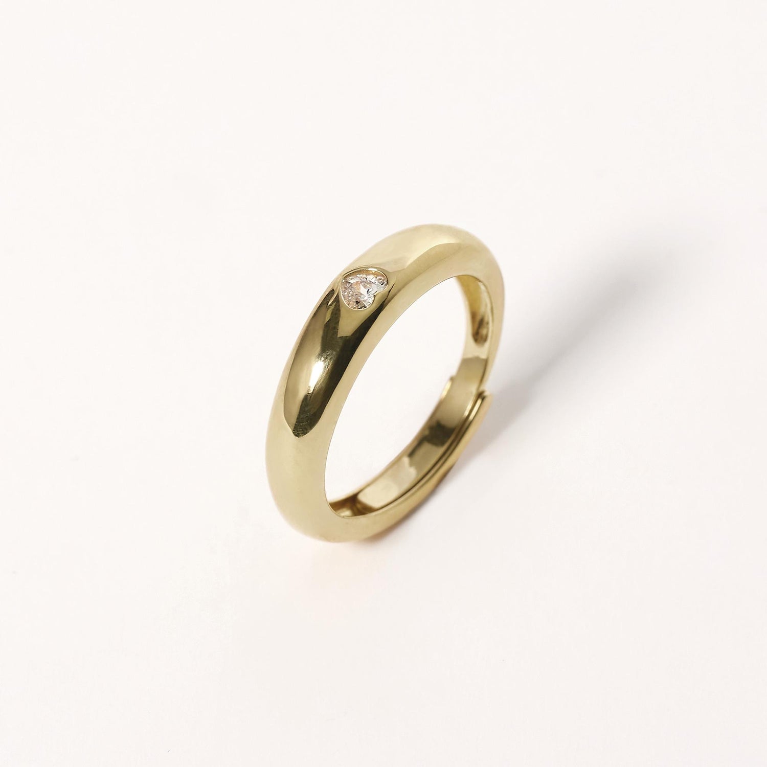 Anello in argento 925/°°° rodiato e dorato con zircone taglio cuore 3x3 mm regolabile da misura 11 a 19.