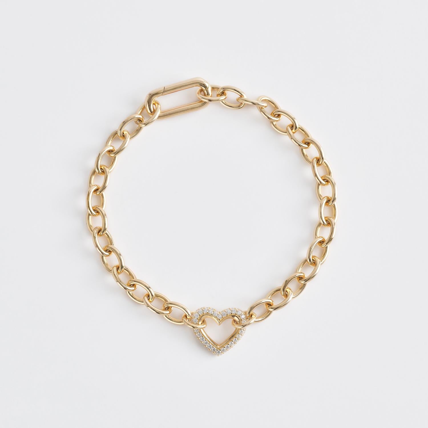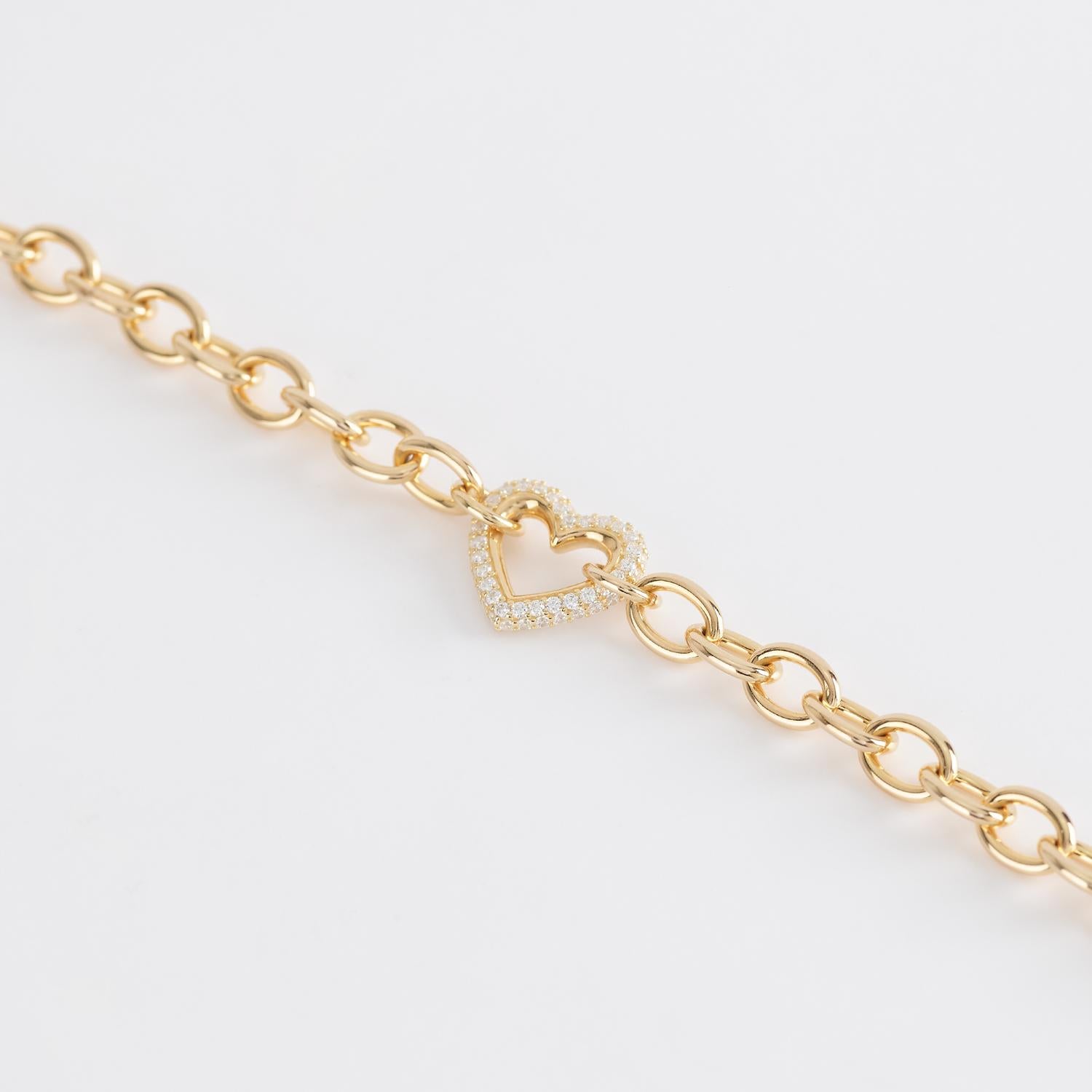 Bracciale rolò in argento dorato con maglia centrale a cuore in zirconi.