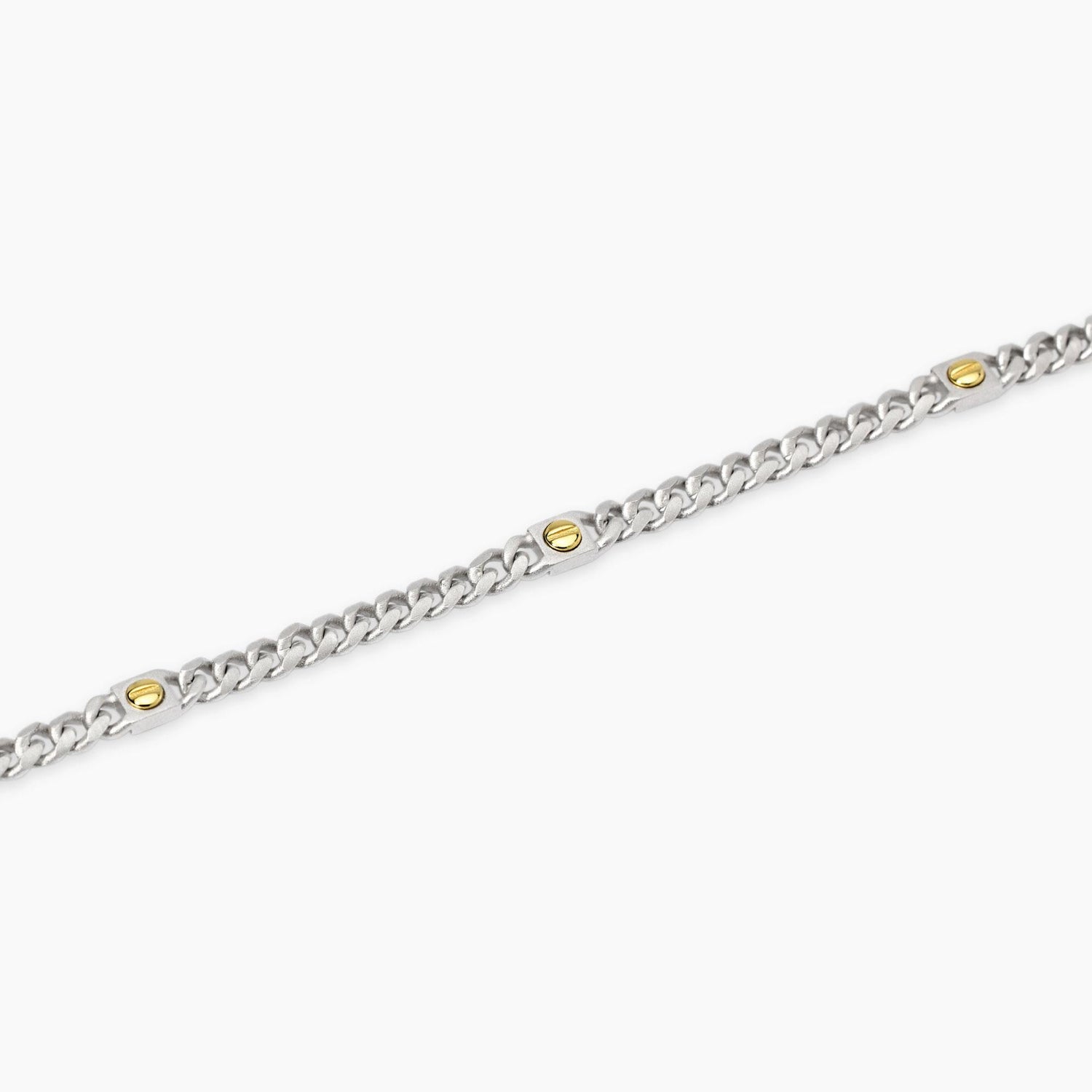 Bracciale uomo regolabile in argento rodiato sabbiato con catena groumette diamantata ed elementi con viti placcate oro 18K.