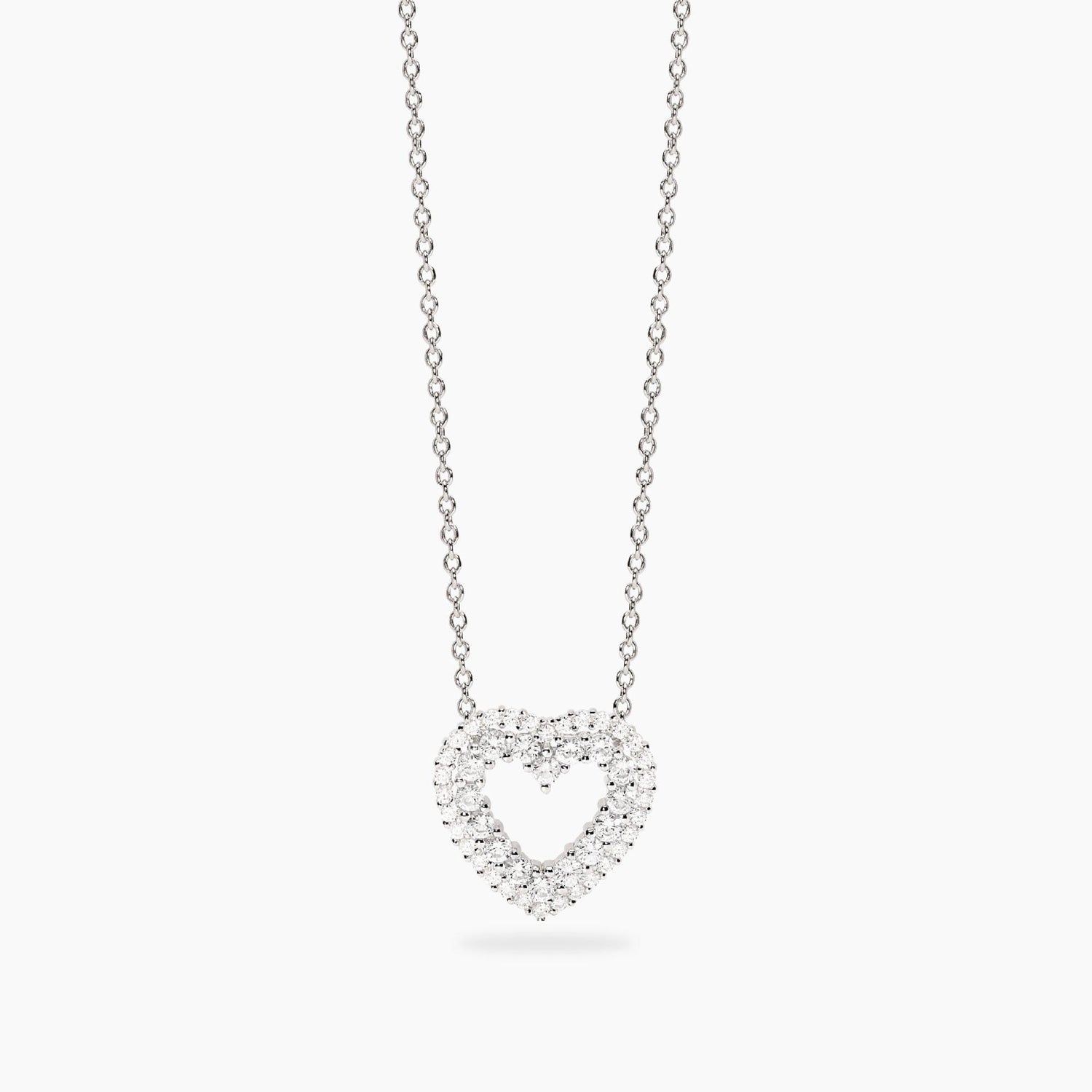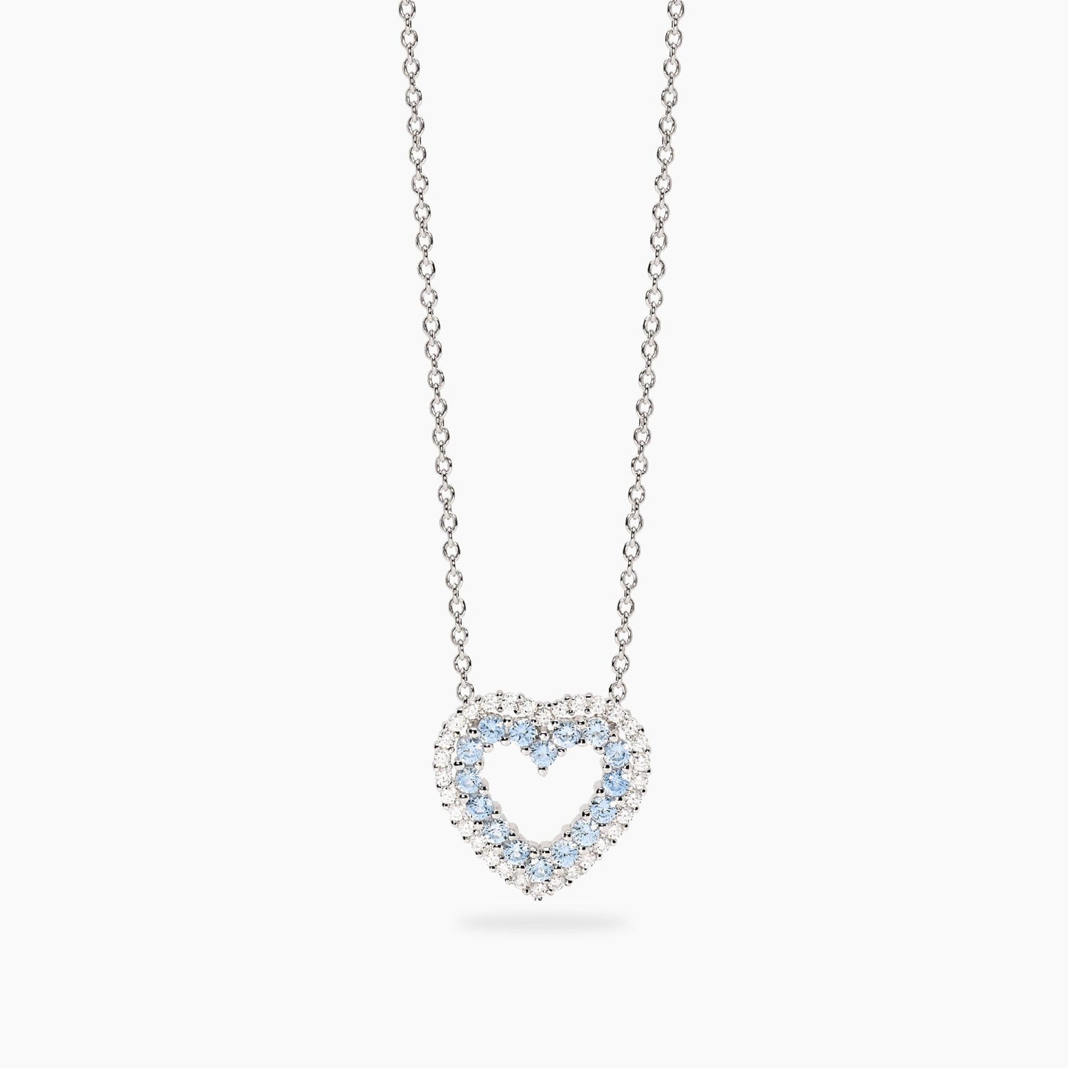 Girocollo in argento rodiato con catena rolò e pendente cuore in zirconi bianchi o turchesi.