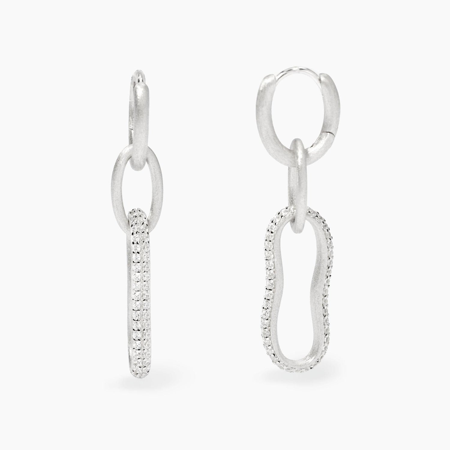 Orecchini a cerchio in argento rodiato bulinato con pendenti in zirconi bianchi.
