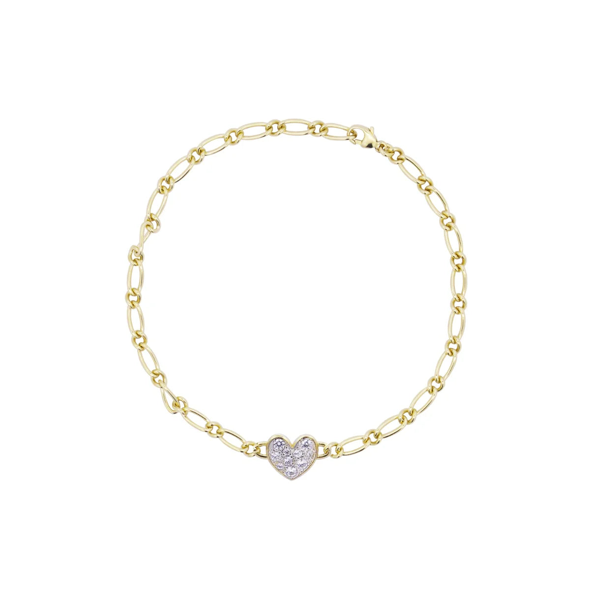 Bracciale con catena cheval e soggetto cuore small pavè.