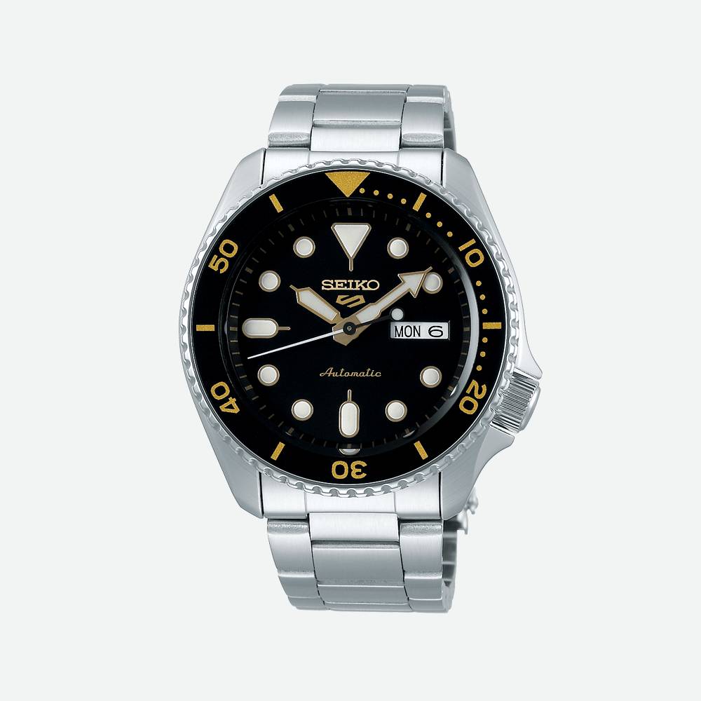 Con questo orologio della collezione Seiko 5 Sports scegli uno stile sportivo. Interamente in acciaio inossidabile, questo modello automatico resistente e affidabile sarà un compagno immancabile durante il lavoro e lo sport. Il nero del quadrante e della lunetta unidirezionale è ravvivato dai tocchi mat dorati degli indici, delle lancette e delle graduazioni. Questo orologio impermeabile fino a 100 metri esibisce un fondello vite trasparente, che ti consentirà di ammirare il movimento.