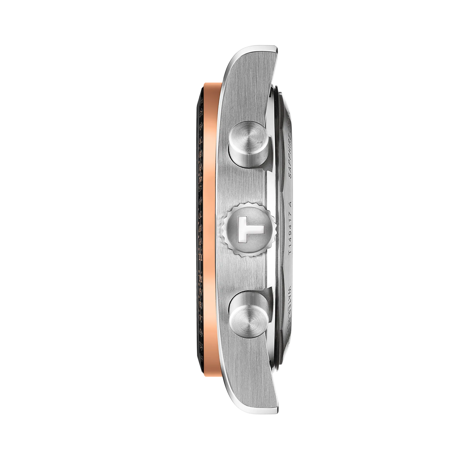 Presentato per la prima volta negli anni '60, il PR516 è stato ispirato dal mondo ad alta velocità delle corse automobilistiche. Mentre Tissot espande la linea PR516, continua ad alimentare lo spirito di coloro che cercano un orologio implacabile come le loro attività, spingendoli ad affrontare le sfide a testa alta, proprio come gli eroi che lo indossano. Il cronografo al quarzo PR516 si piazza in prima linea, con un audace quadrante nero e sorprendenti accenti in PVD oro rosa. Con il suo bracciale bicolore in acciaio inossidabile e PVD oro rosa, questo orologio ti mantiene in sintonia con il ritmo della vita, assicurandoti di mantenere lo slancio verso la vittoria. Il movimento del cronografo al quarzo offre una misurazione del tempo senza sforzo senza la necessità di una carica costante, fornendo la coerenza e la precisione necessarie in ogni momento.