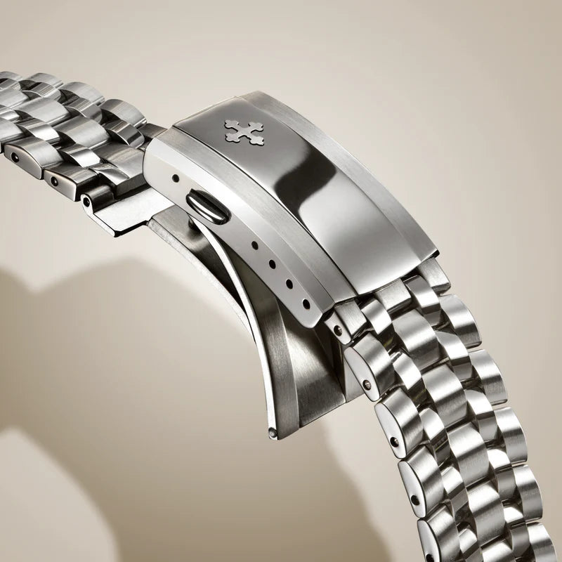Nereide Malachite combina eleganza naturale e prestazioni subacquee con un quadrante in autentica malachite, riconoscibile per le sue uniche striature verdi. La cassa in acciaio 316L, abbinata a una lunetta in tungsteno inscalfibile, offre resistenza e affidabilità. Il design è completato dal bracciale Sansovino, con maglie lucide e satinate, dotato di una chiusura con micro-regolazione per garantire una vestibilità ideale.