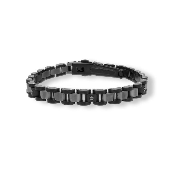 Bracciale in acciaio 316L con pvd gun metal e nero cm 21