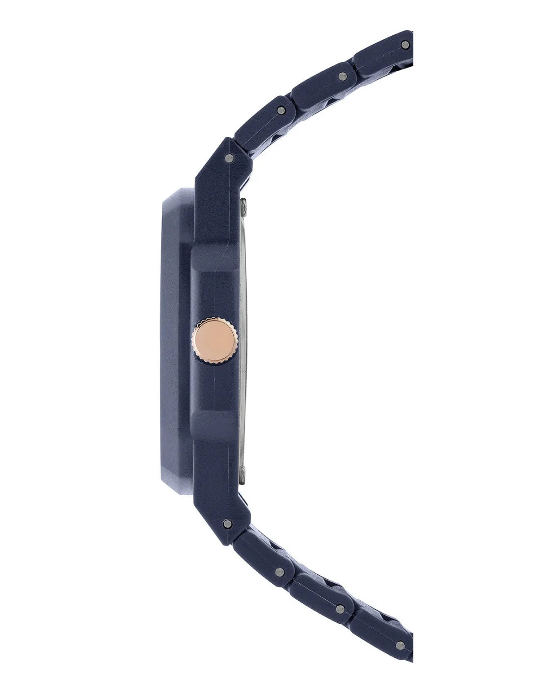 Stile sportivo e minimalista: la cassa da 49x43 mm, con linee pulite e un unico colore blu, offre un look casual e contemporaneo. Perfetto per chi ama uno stile semplice e funzionale.