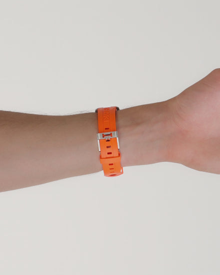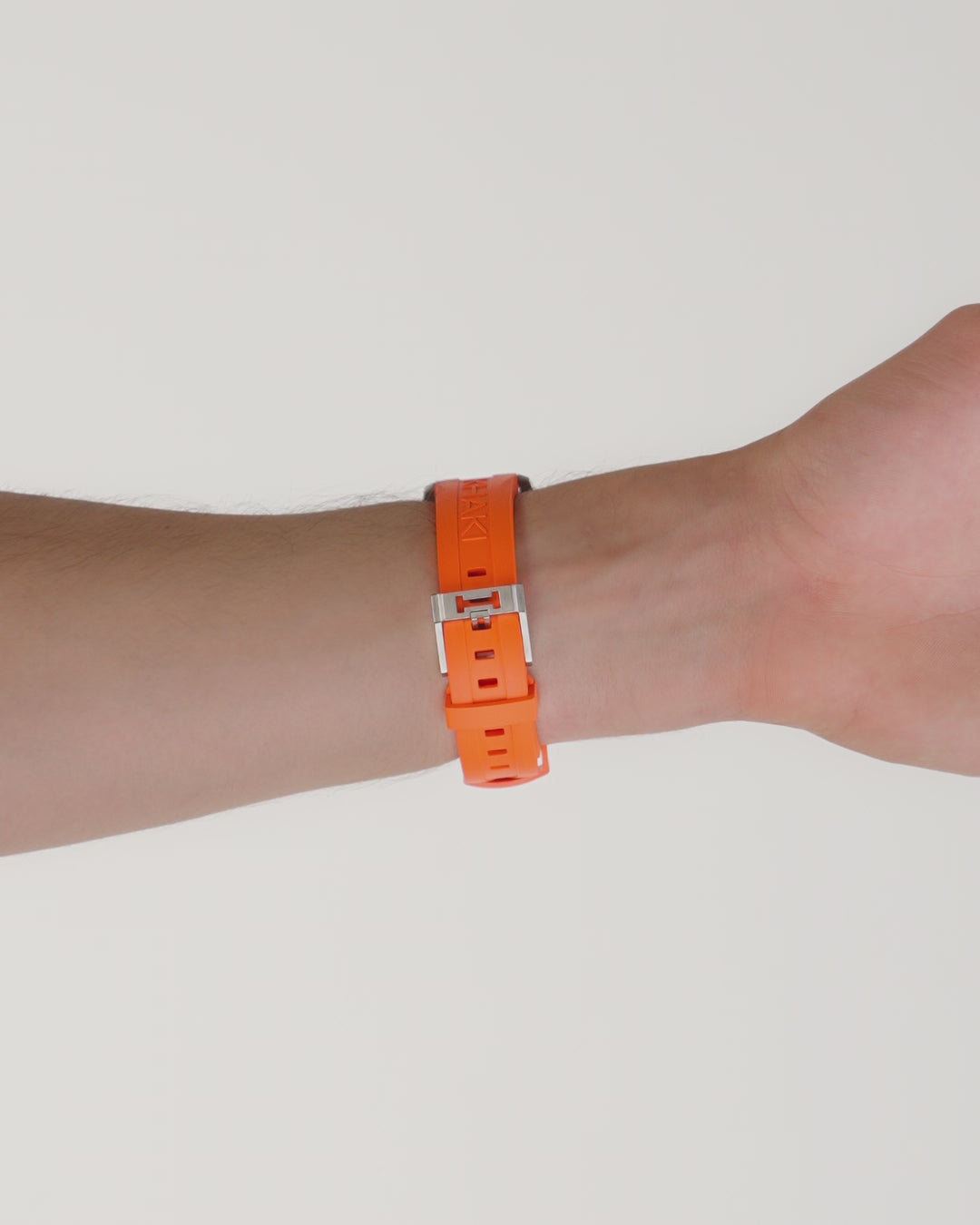 Sulla spiaggia, a bordo piscina o nelle profondità marine, lo stile del nuovo Khaki Navy Scuba fa sempre colpo. Pensato per i marinai moderni, i surfisti, gli amanti dello snorkeling o della spiaggia, è accattivante e funzionale grazie al cinturino in caucciù arancione e al quadrante nero a contrasto. Il tuo compagno ideale per cronometrare una nuotata, una corsa o per un momento di relax al sole.