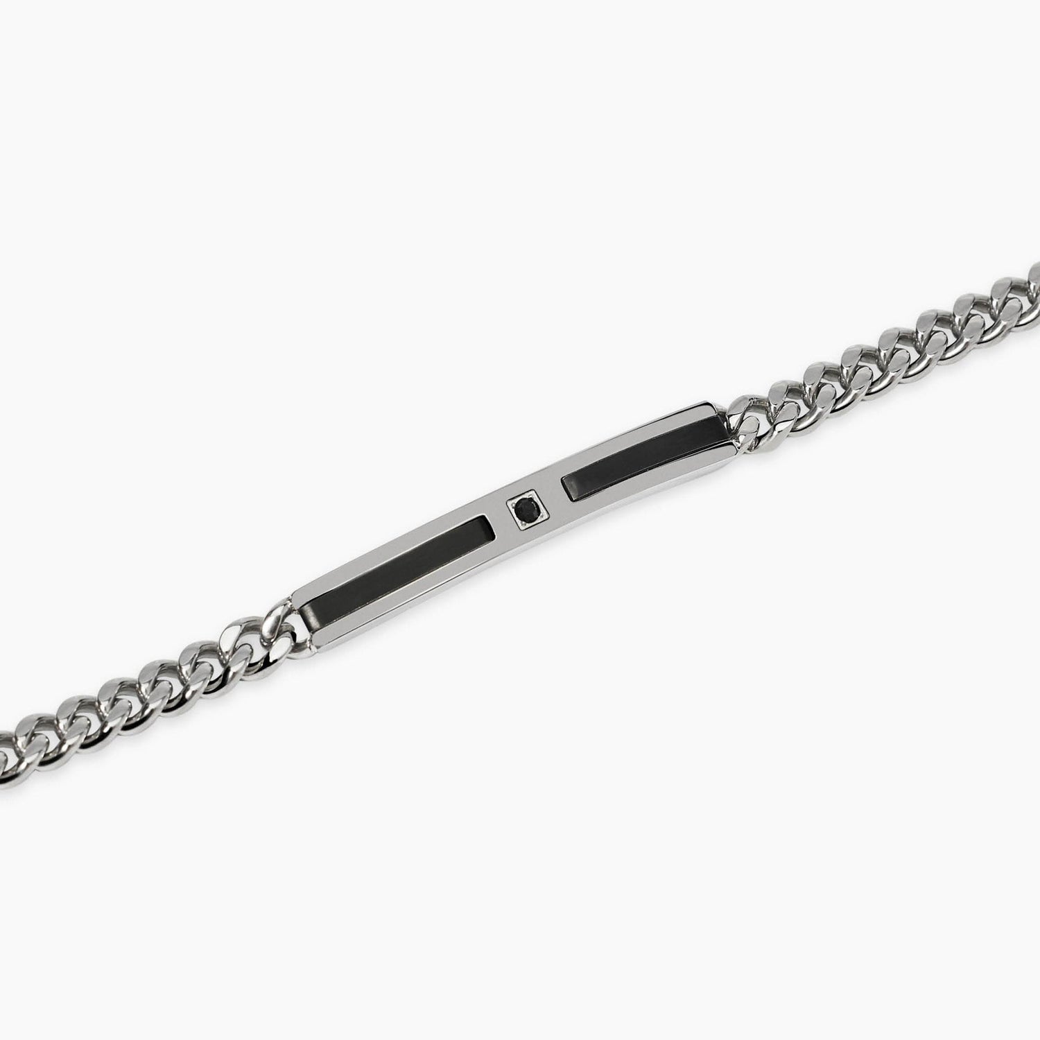 Bracciale regolabile in acciaio lucido e satinato con catena groumette satinata e spazzolata. Piastra centrale nera con cristallo.