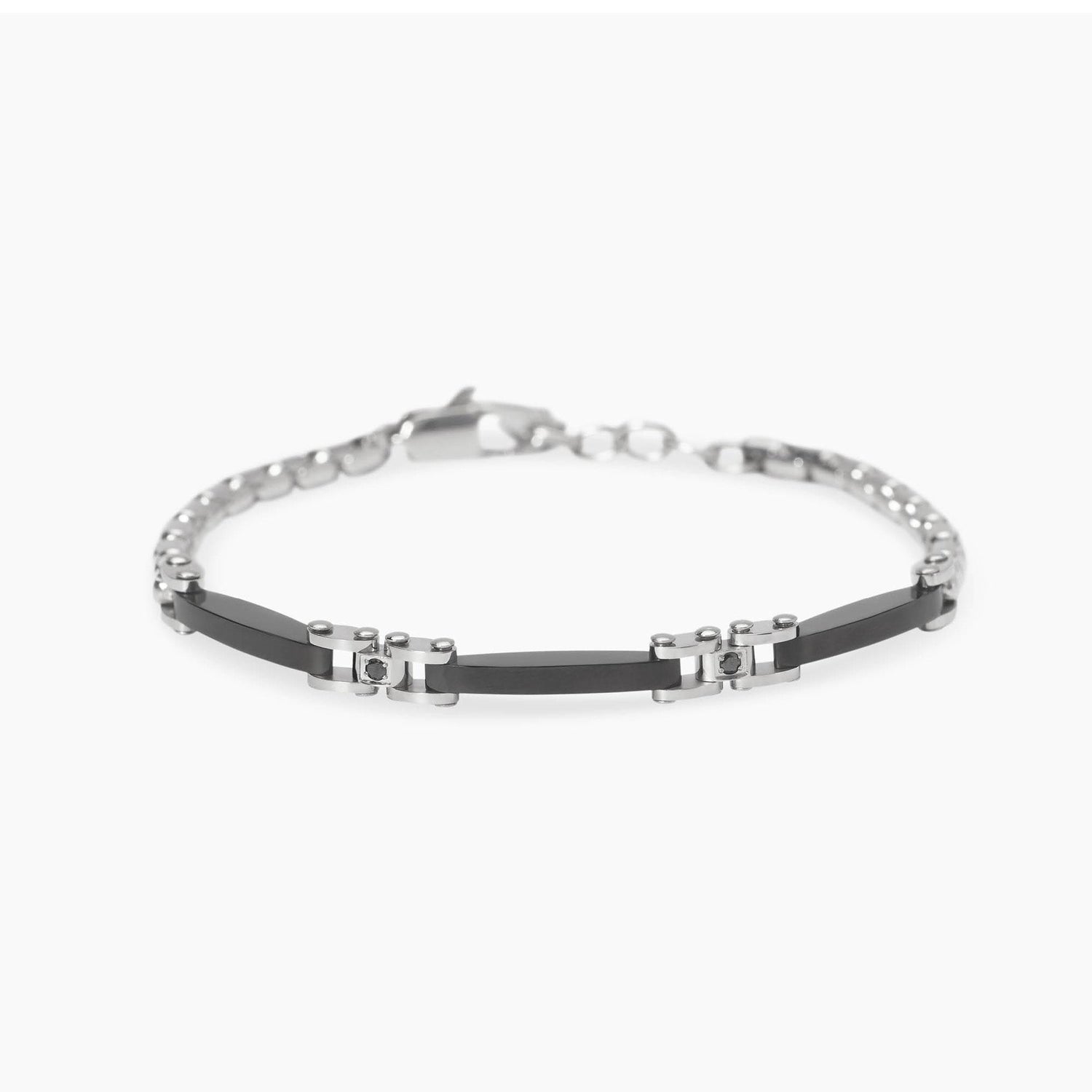 Bracciale regolabile in acciaio con elementi in PVD nero e cristalli neri.
