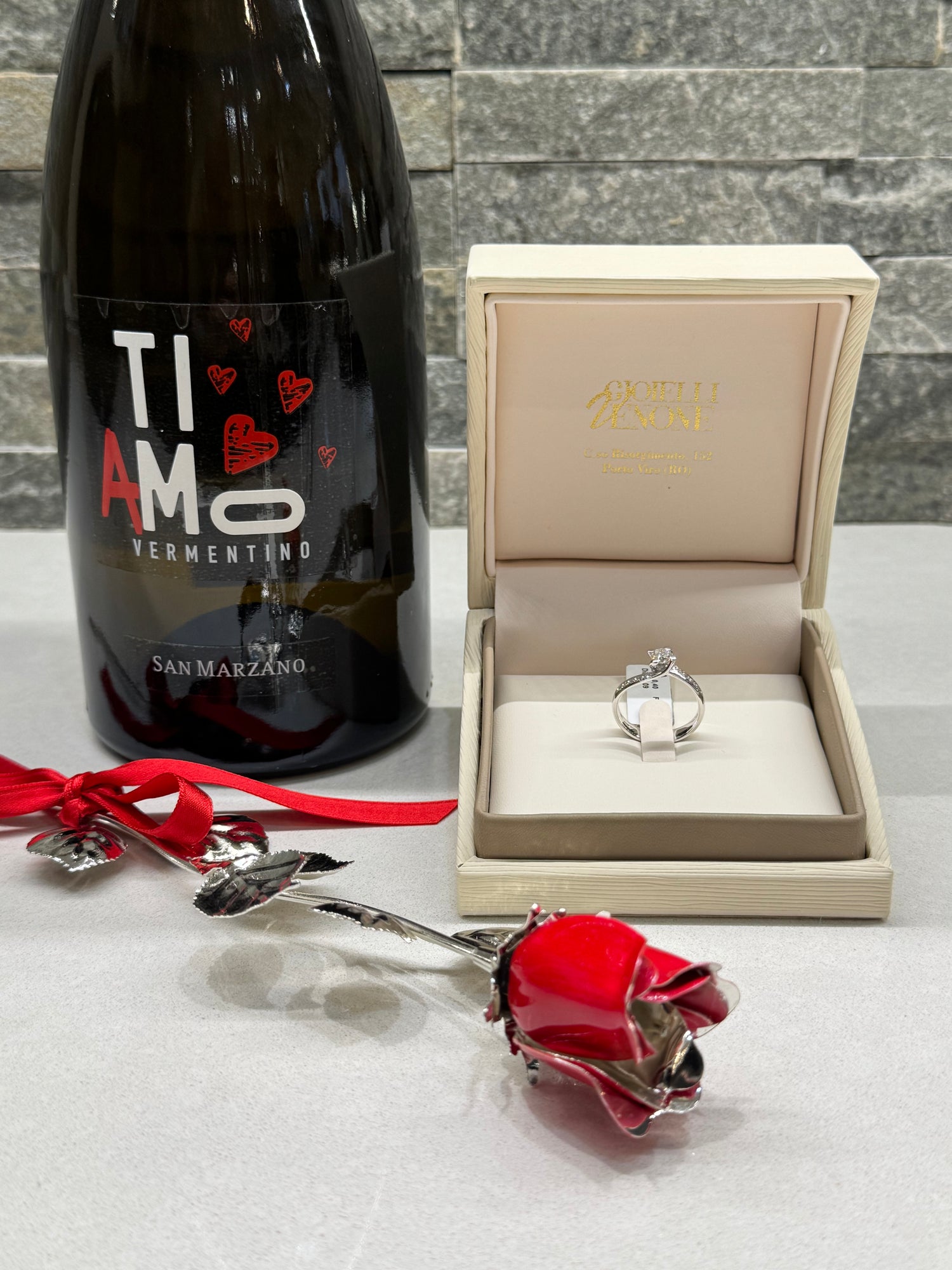 Kit San Valentino con Bottiglia San Marzano e Rosa laminata in argento