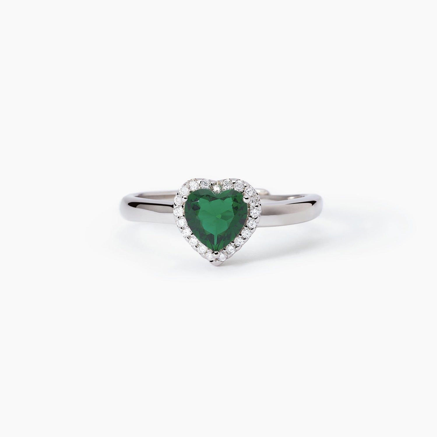 MABINA - Anello con smeraldo sintetico taglio cuore