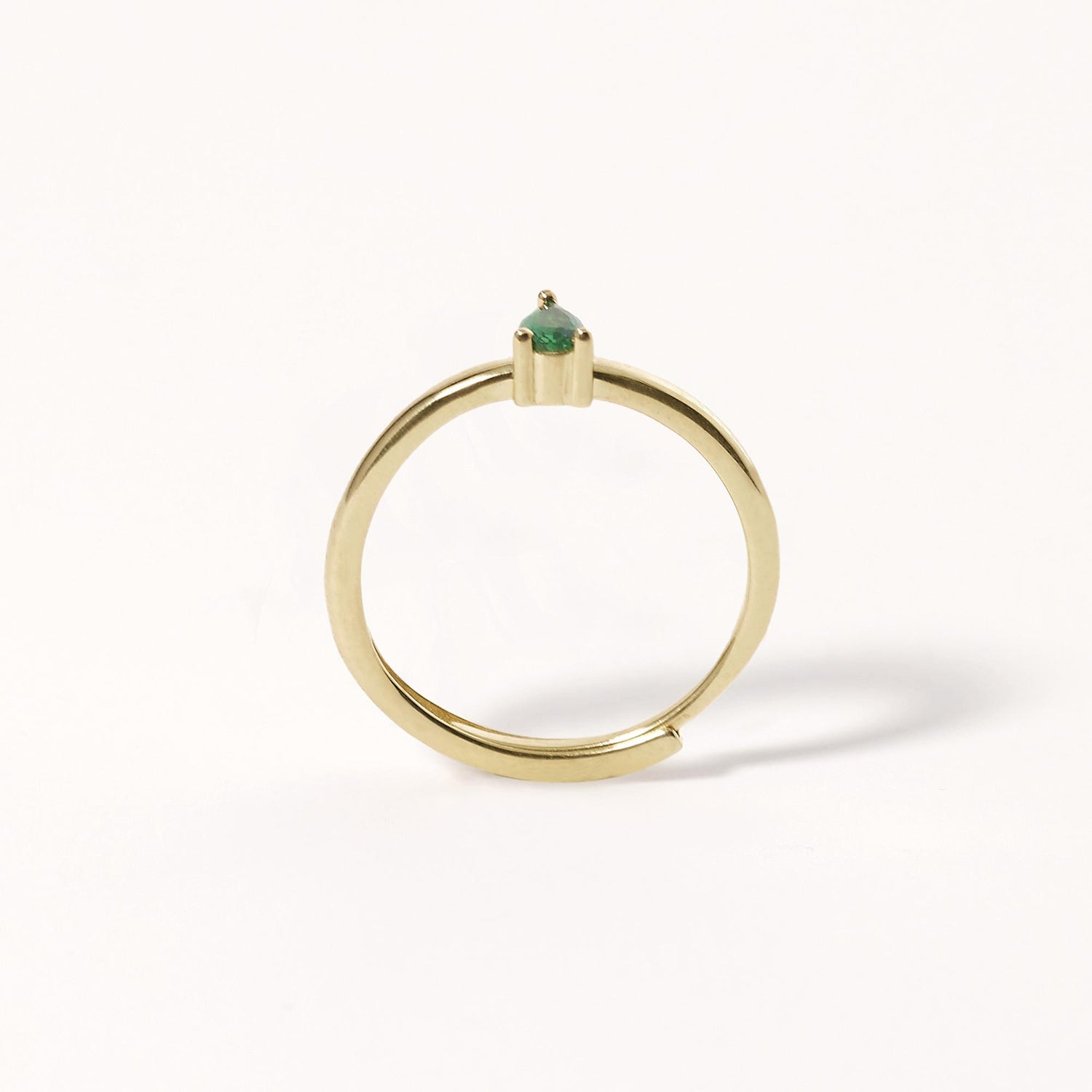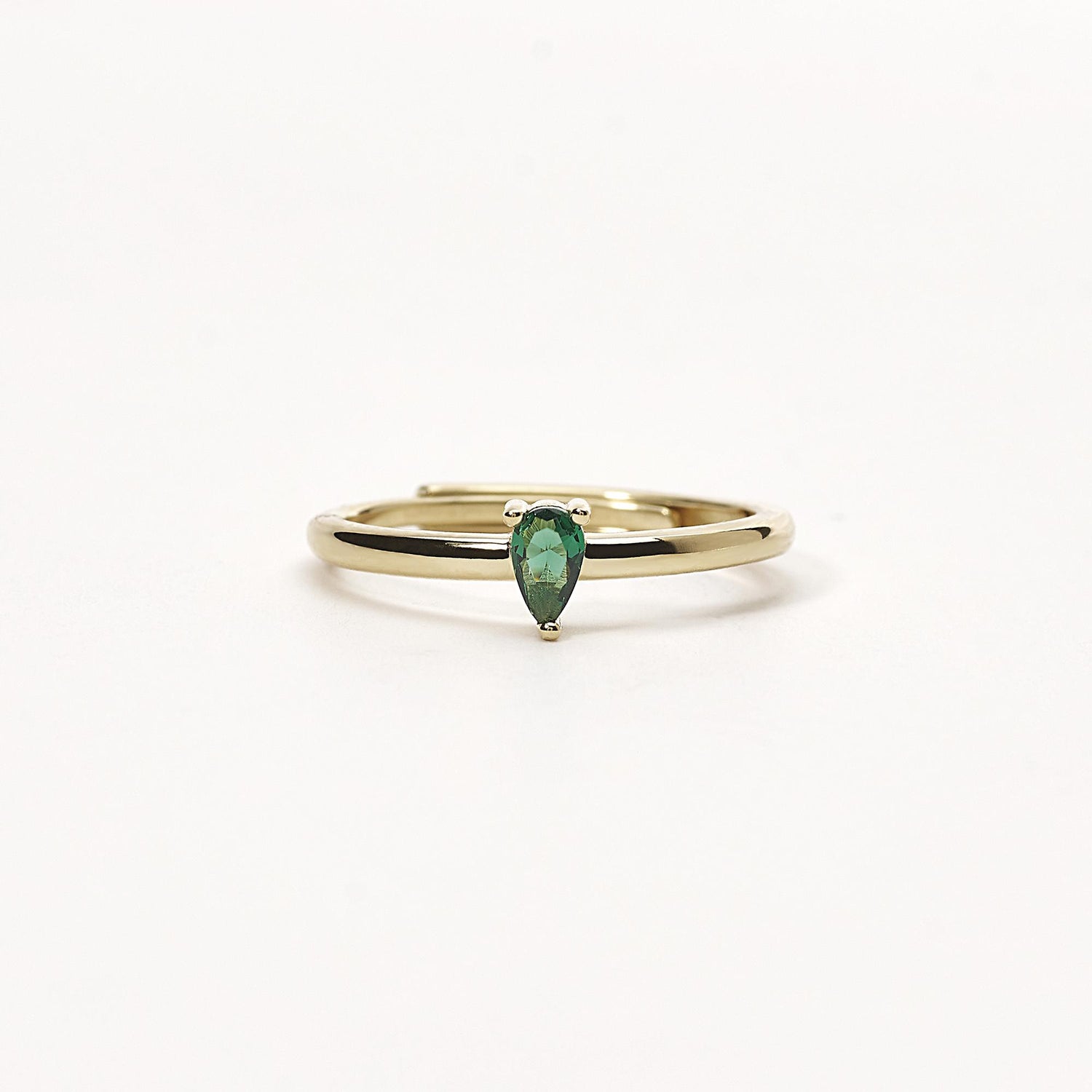Anello in argento 925/°°° dorato con smeraldo sintetico taglio goccia 3x5 mm regolabile da misura 9 a 17
