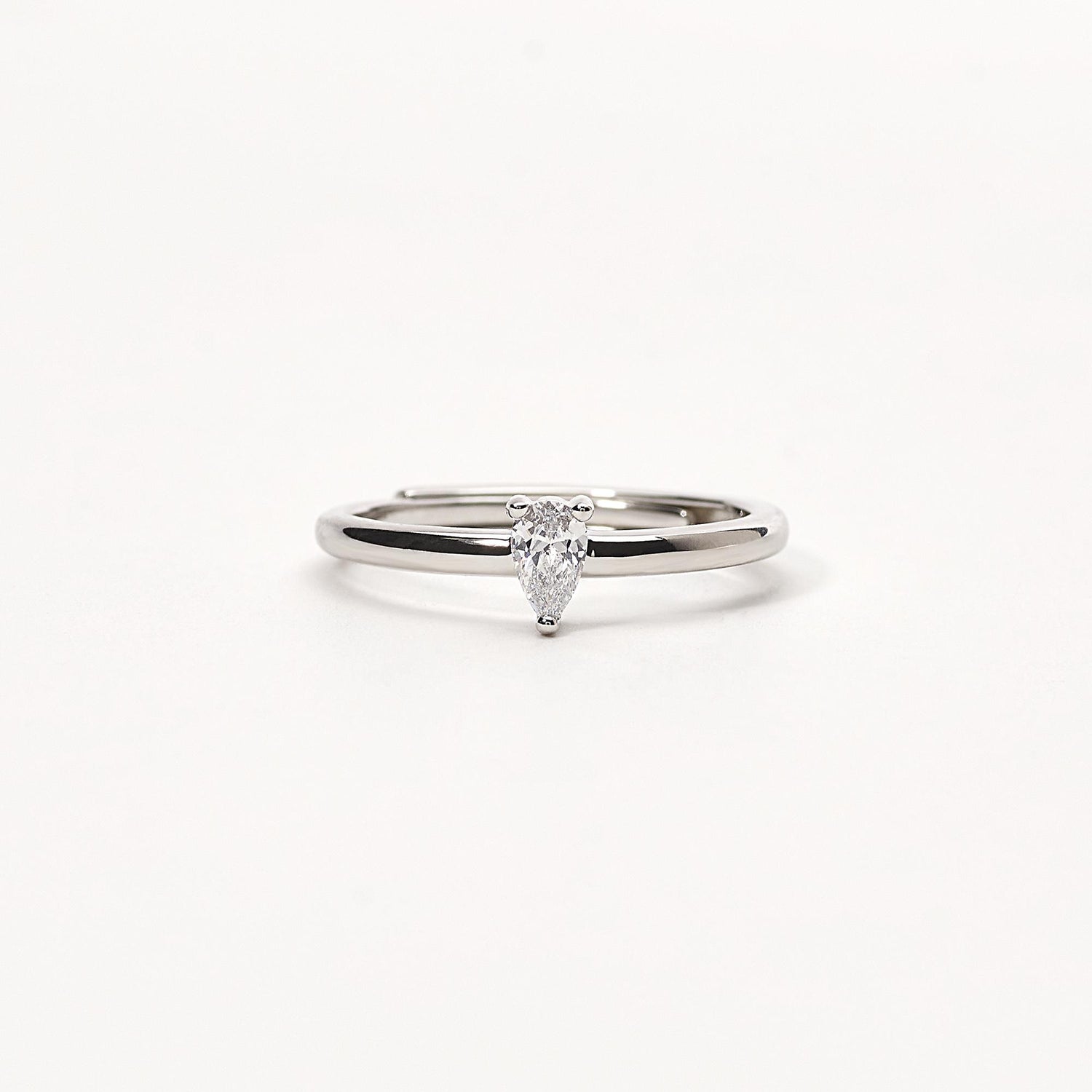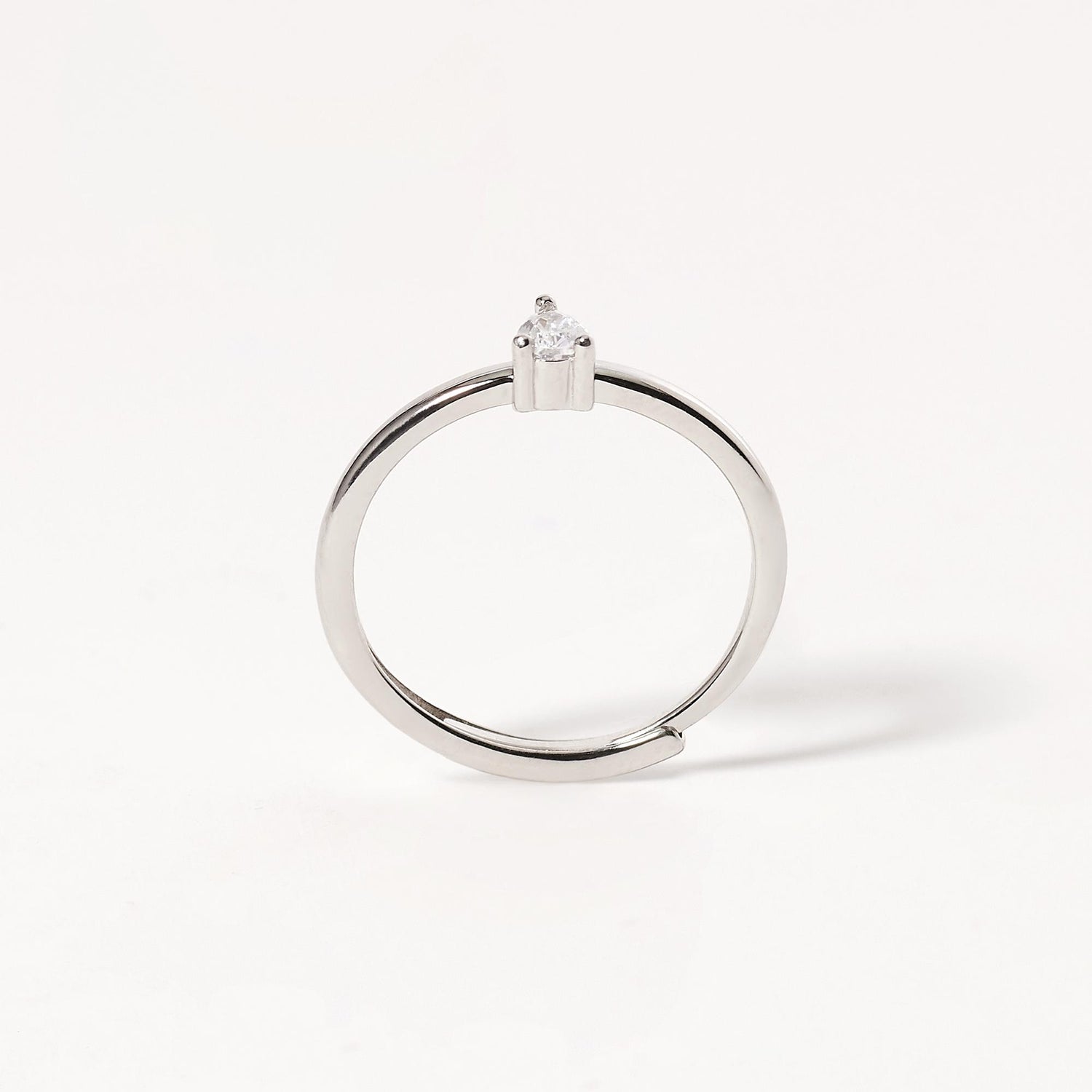 Anello in argento 925/°°° rodiato con zircone taglio goccia 3x5 mm regolabile da misura 9 a 17