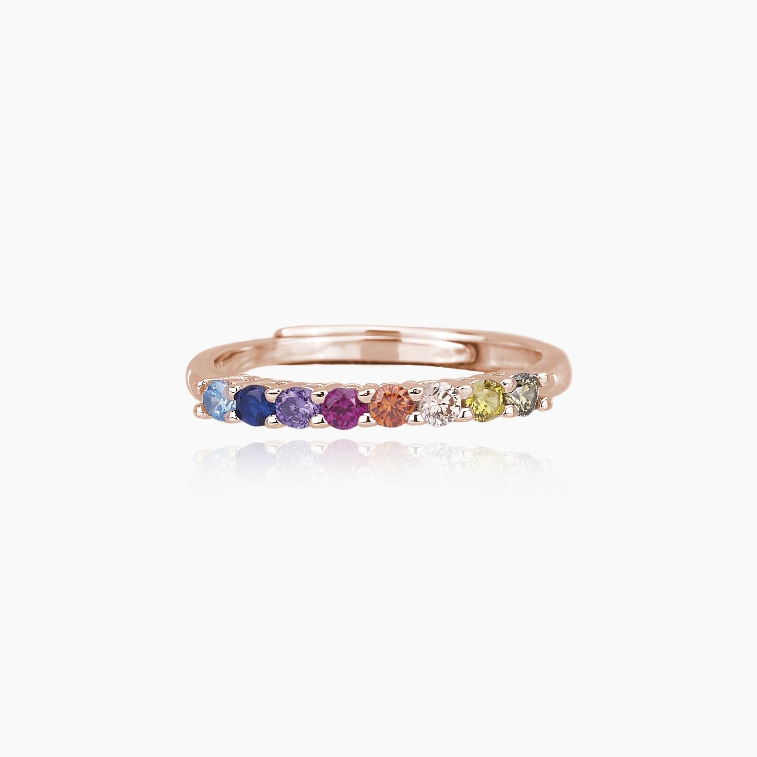 Anello veretta in argento rosato con zirconi multicolor a mezzo giro.