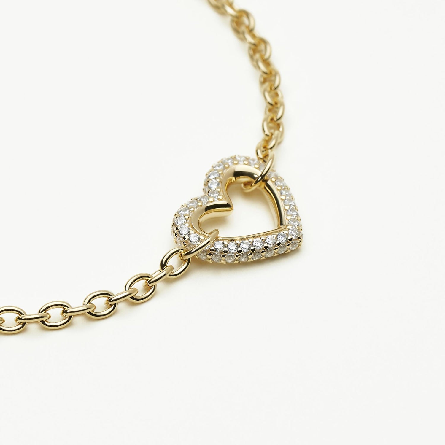 Bracciale rolò in argento dorato con maglia a cuore in pavé di zirconi.