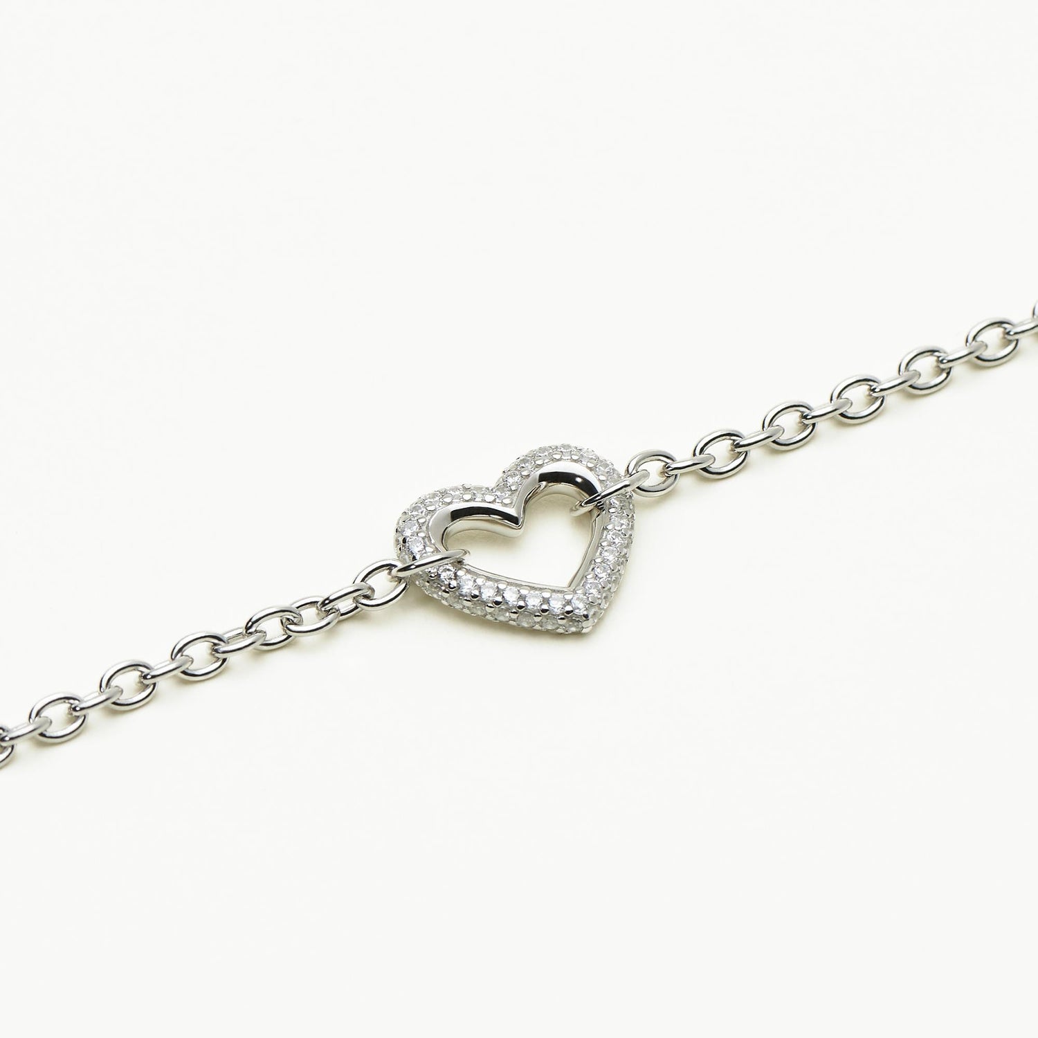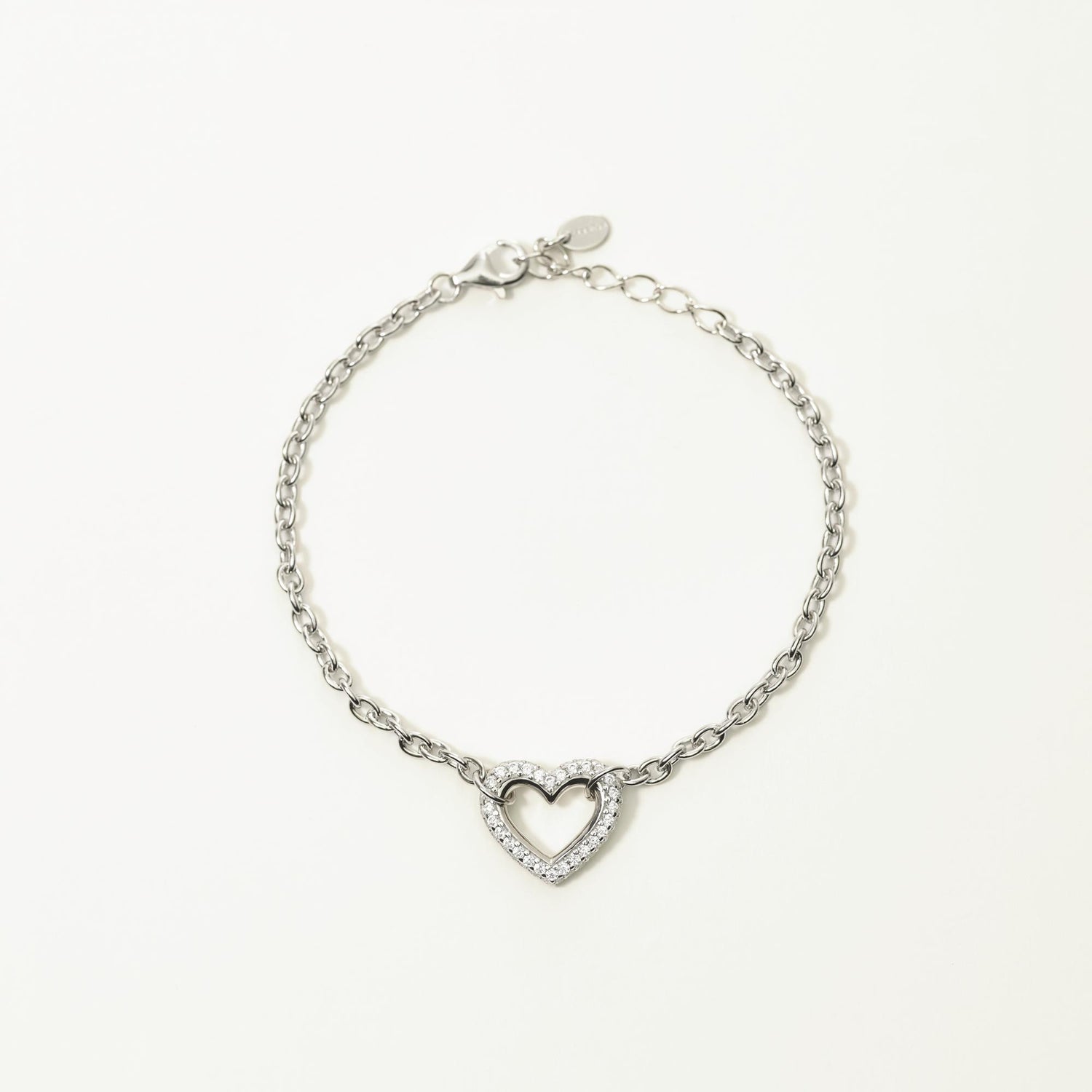 Bracciale rolò in argento con maglia a cuore in pavé di zirconi.
