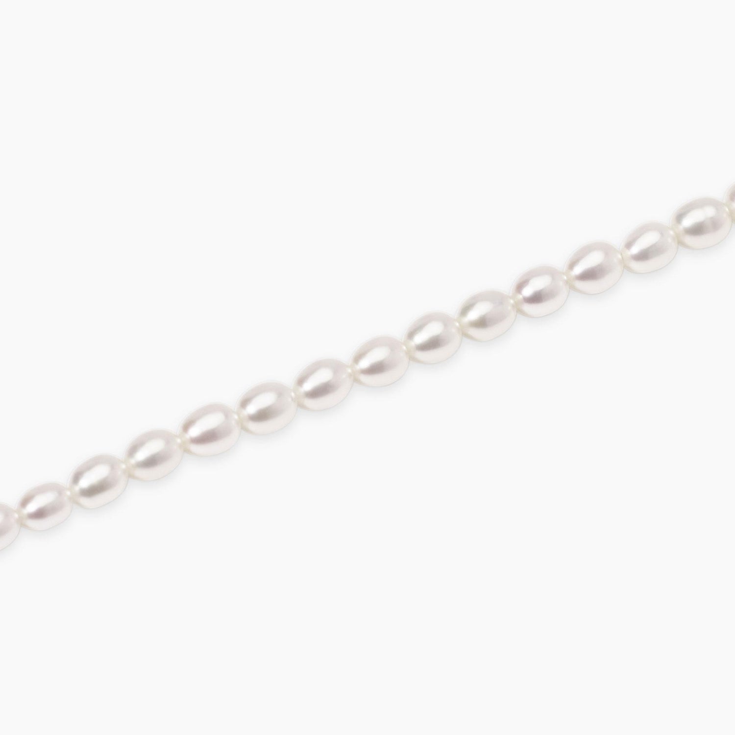 Bracciale regolabile in argento rodiato con perle riso coltivate.