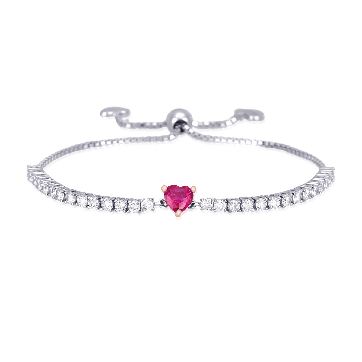Bracciale in Argento 925/°°°, Zirconi e Rubino Sintetico a Cuore