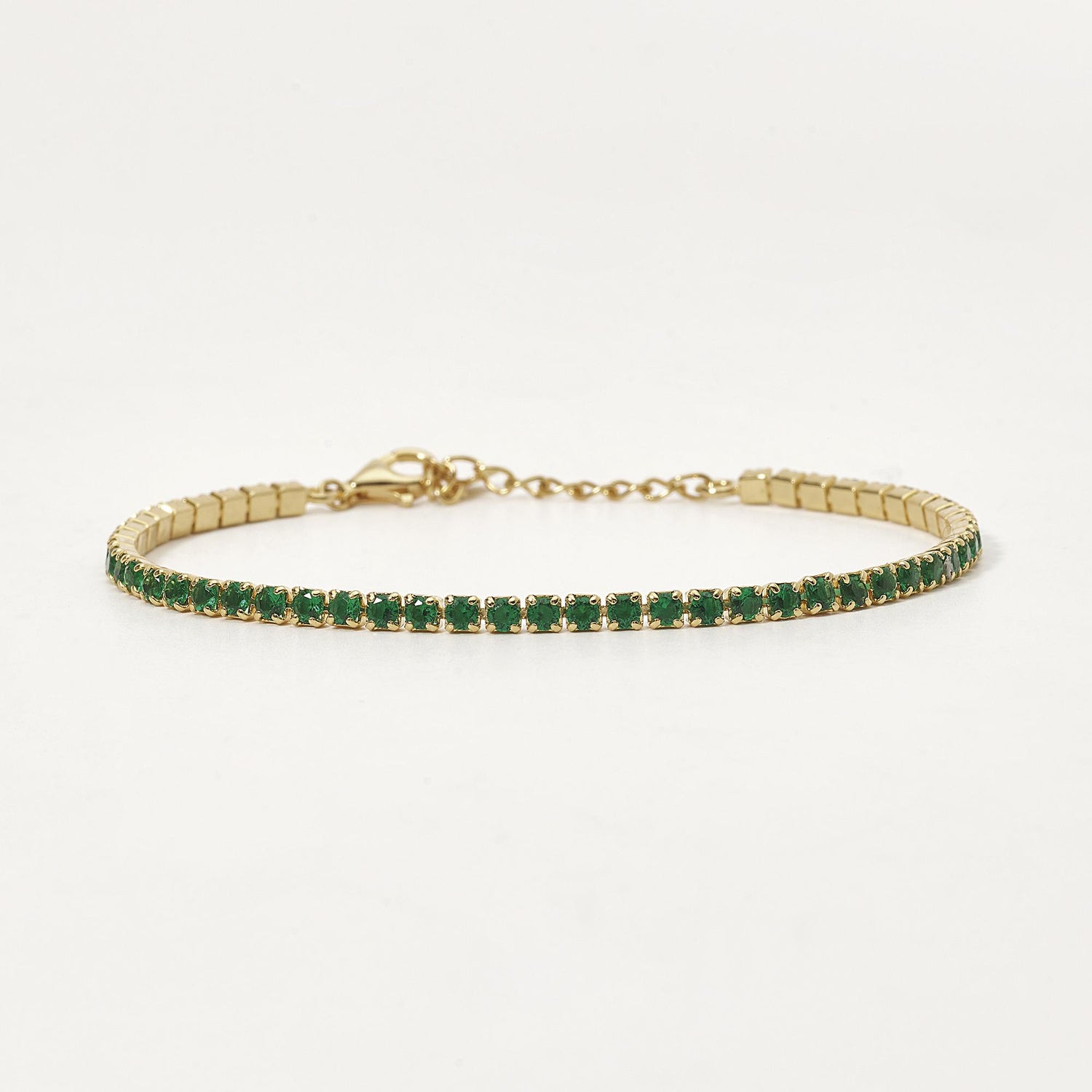 Bracciale in argento 925/°°° dorato con smeraldi sintetici Ø 2.50 mm, lunghezza regolabile da 15.50 a 18.50 cm
