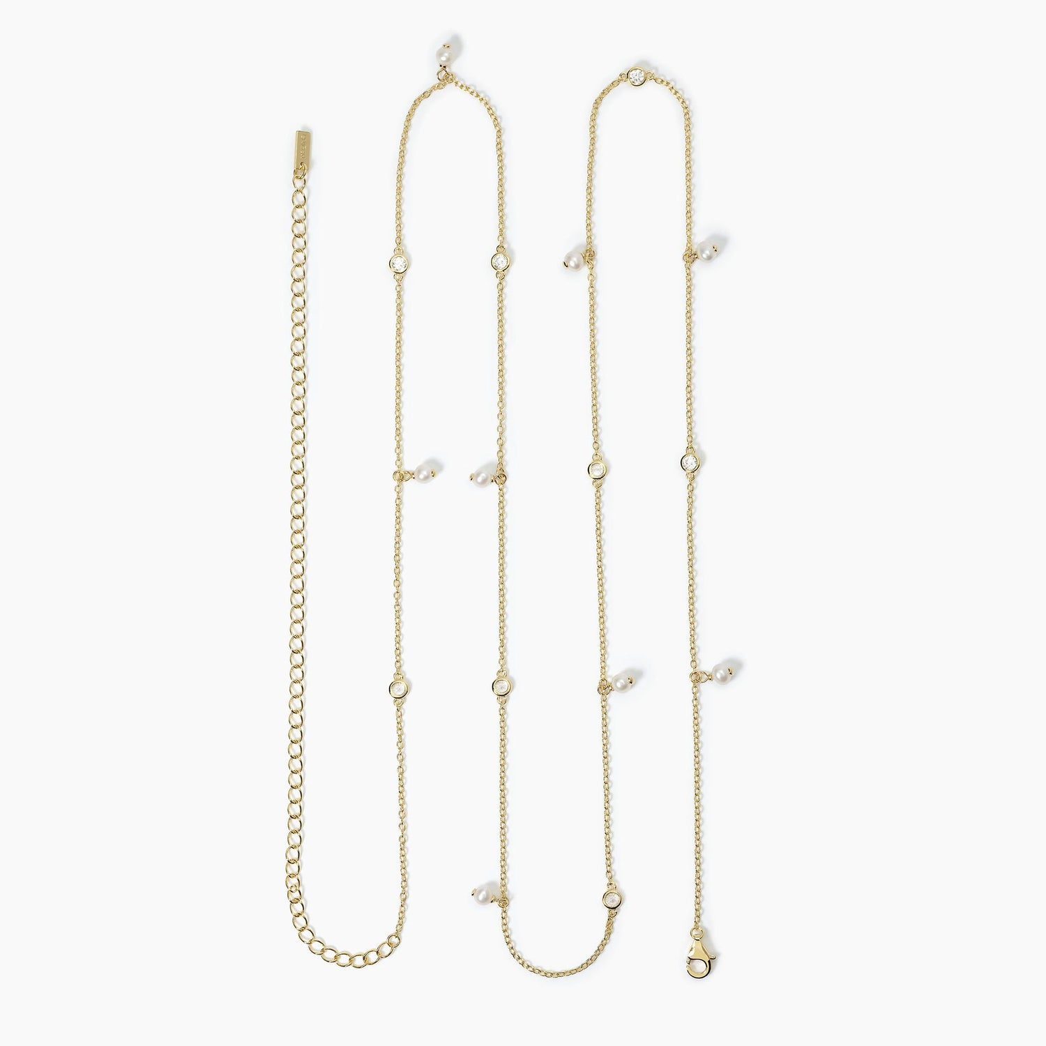 Catena girovita in argento placcato oro 18k con zirconi e perle coltivate.