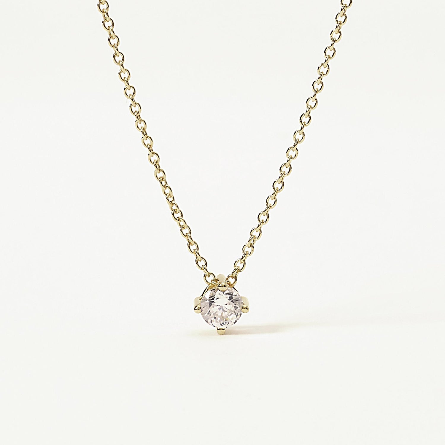 Girocollo in argento 925/°°° dorato, catena rolò larghezza 1.15 mm, lunghezza regolabile da 39 a 45 cm con zircone bianco Ø 4 mm.