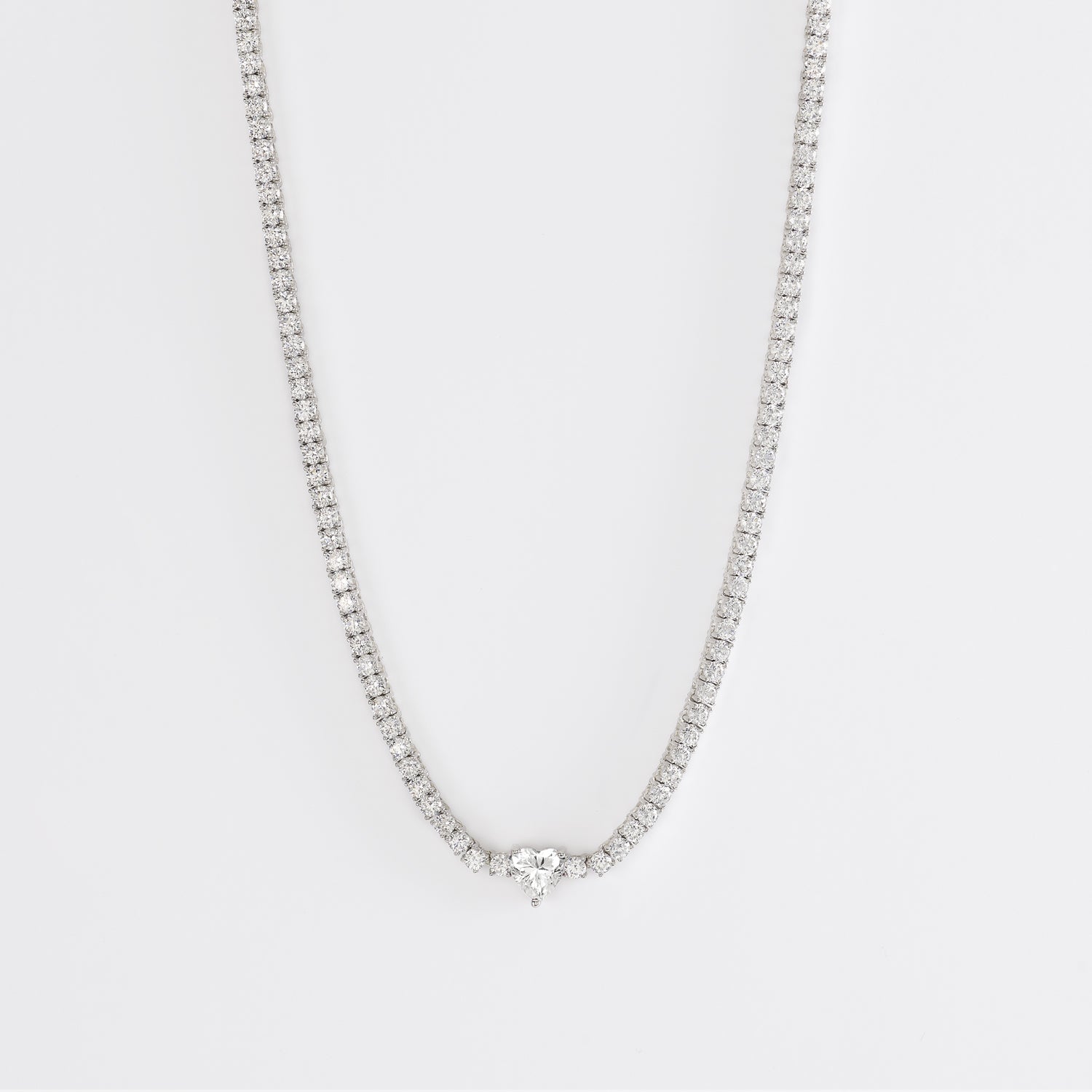 Girocollo tennis in argento con zirconi e zircone centrale a cuore.