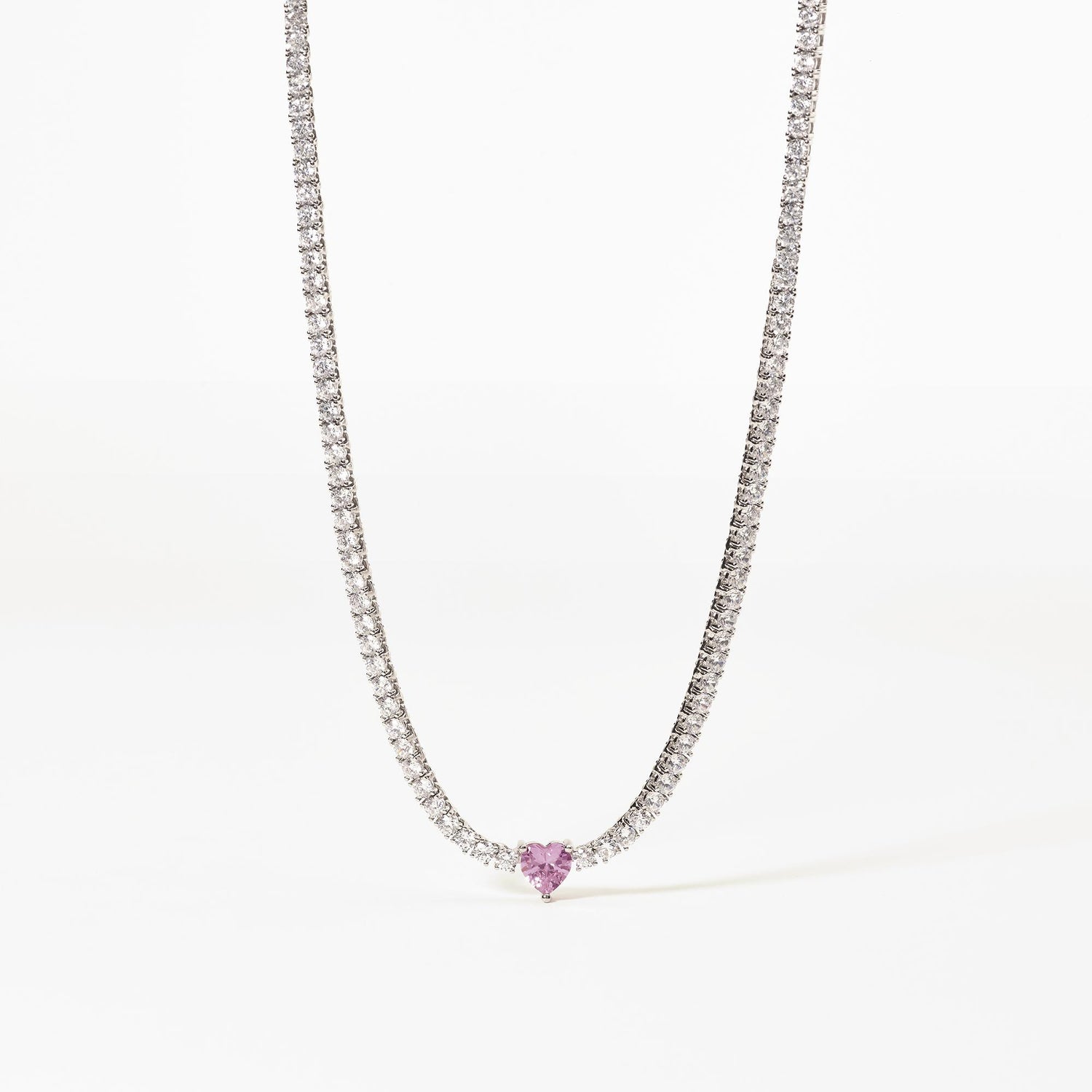 Girocollo in argento 925/°°° rodiato, lunghezza regolabile da 36 a 41 cm con zircone taglio cuore 6x6 mm e zirconi bianchi Ø 2.50 mm.