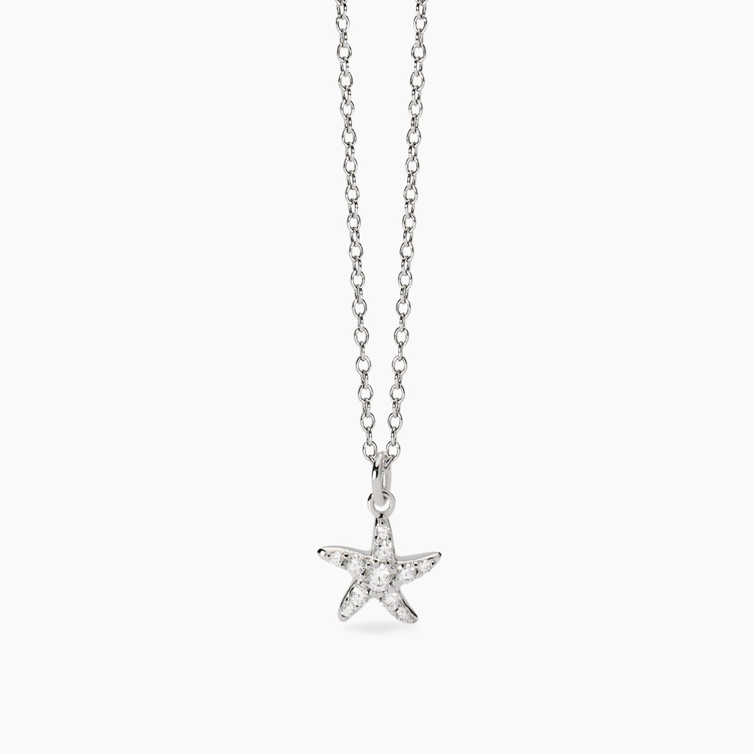 Girocollo in argento con catena rolò e ciondolo sole in zirconi bianchi.