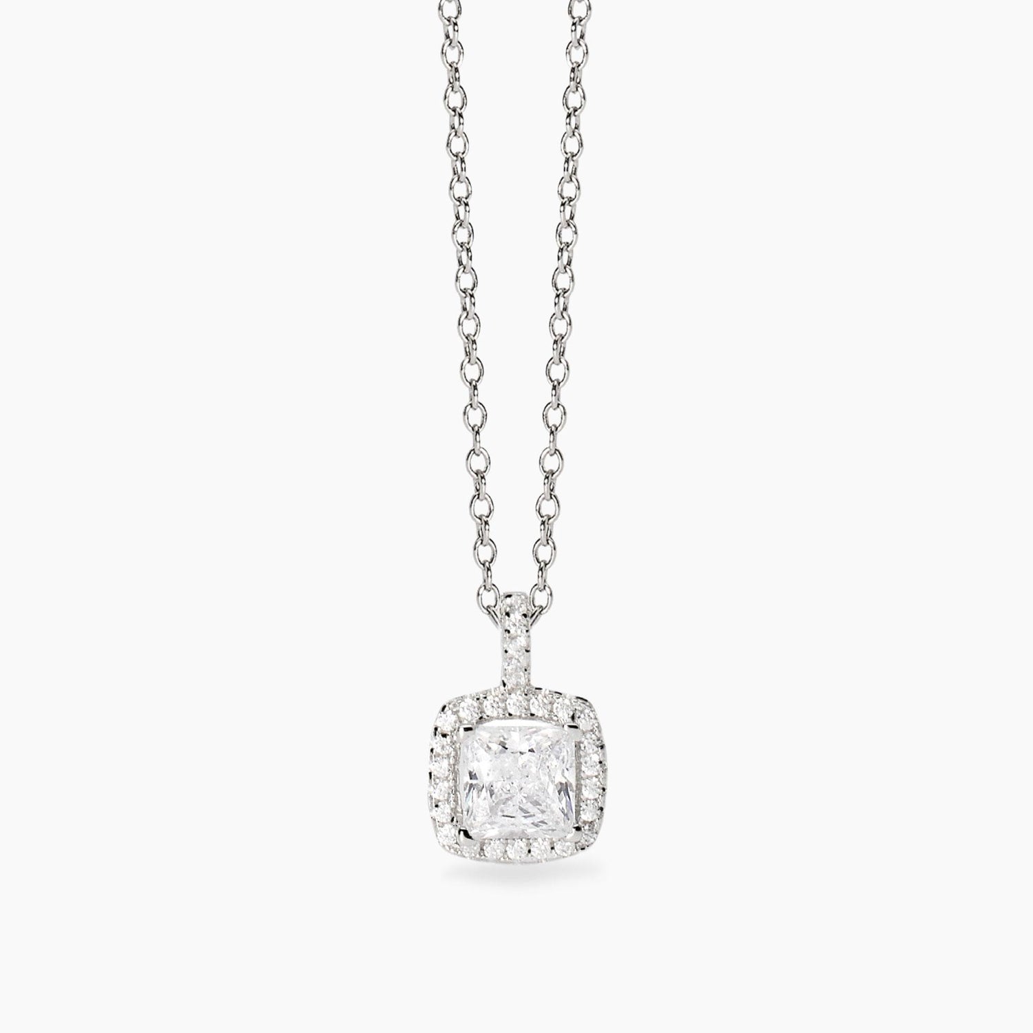 Girocollo in argento con catena rolò con ciondolo in zirconi taglio princess.