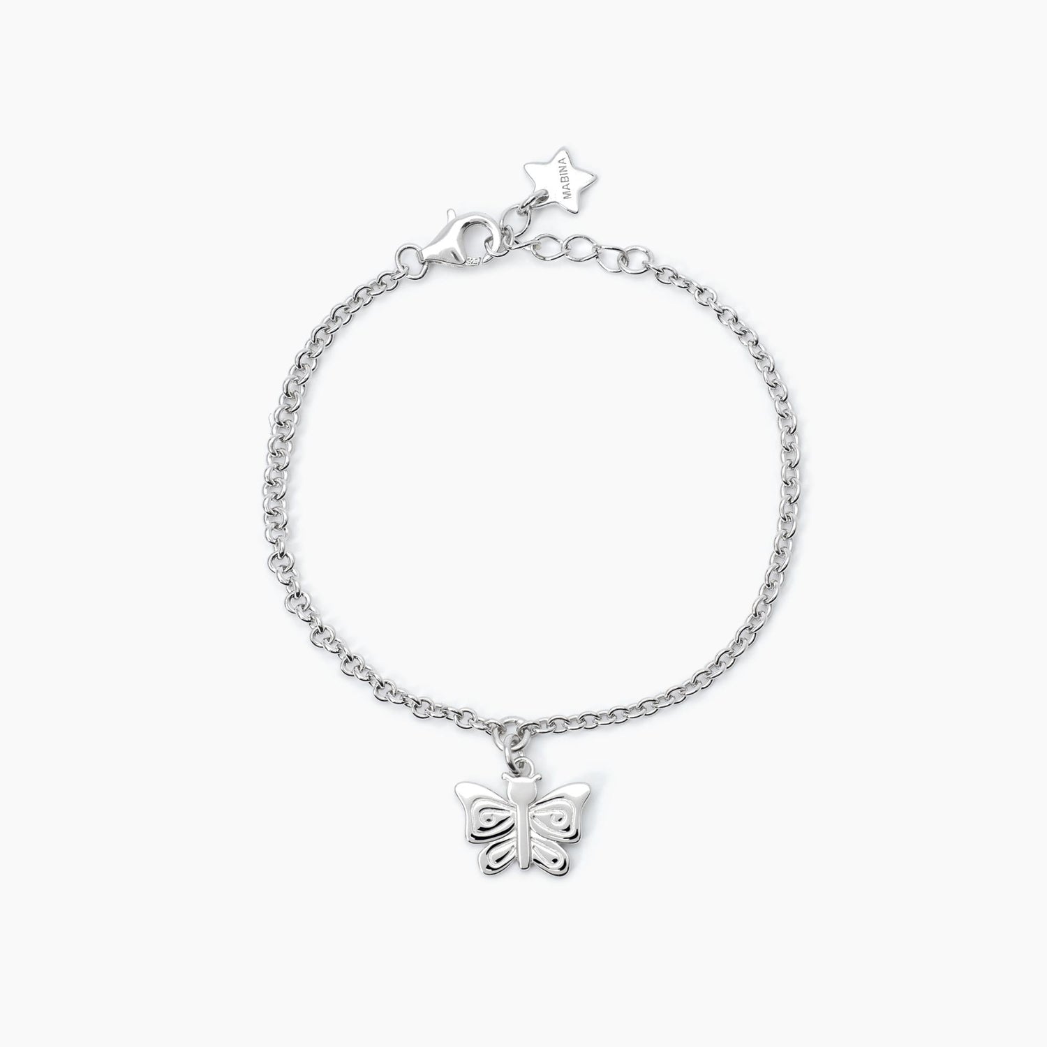 Bracciale bimba in argento con ciondolo a forma di farfalla.