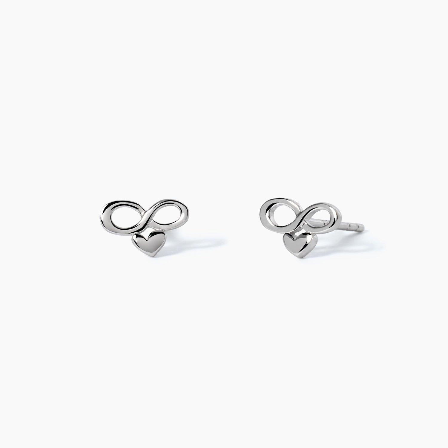 Orecchini a lobo in argento a forma di infinito con cuore.