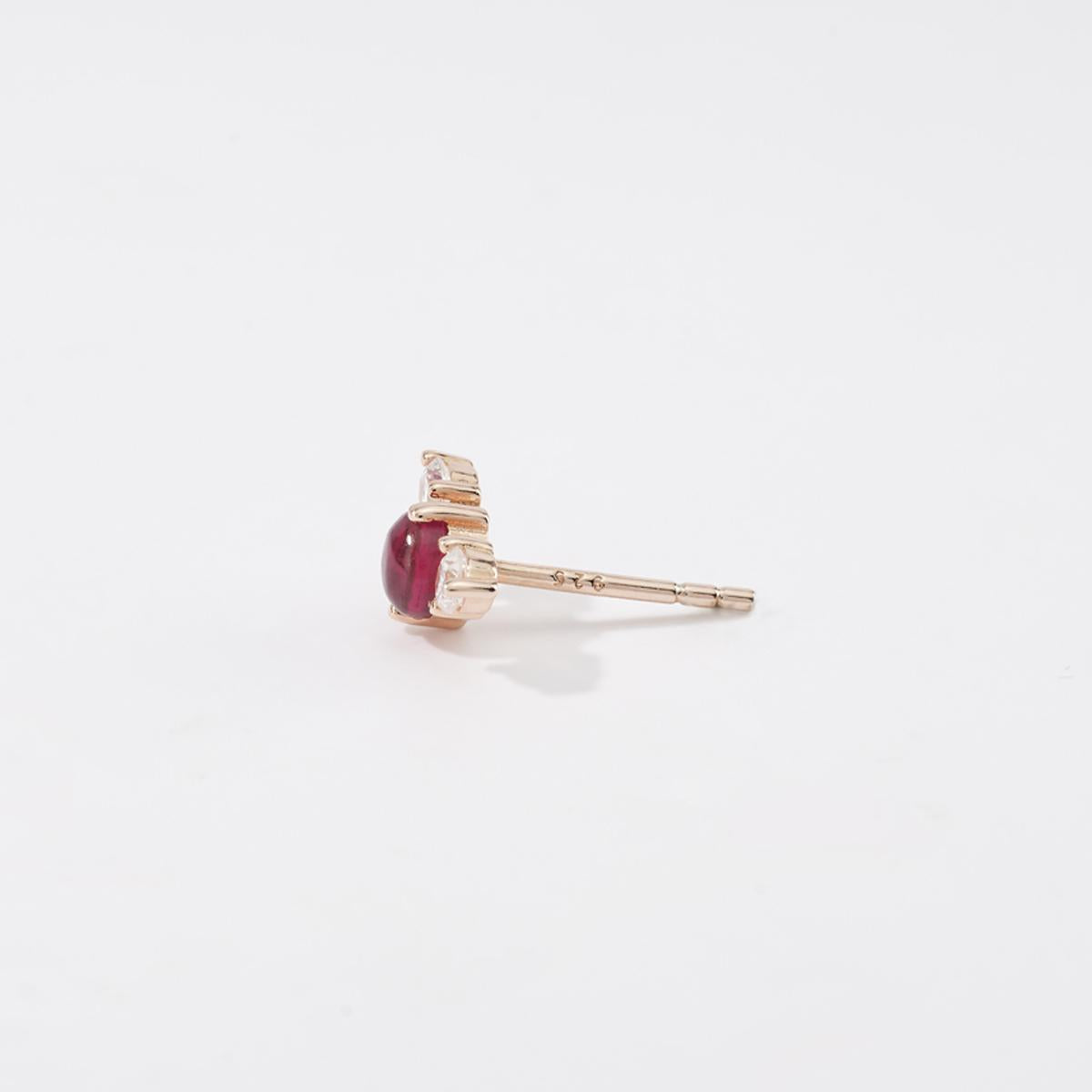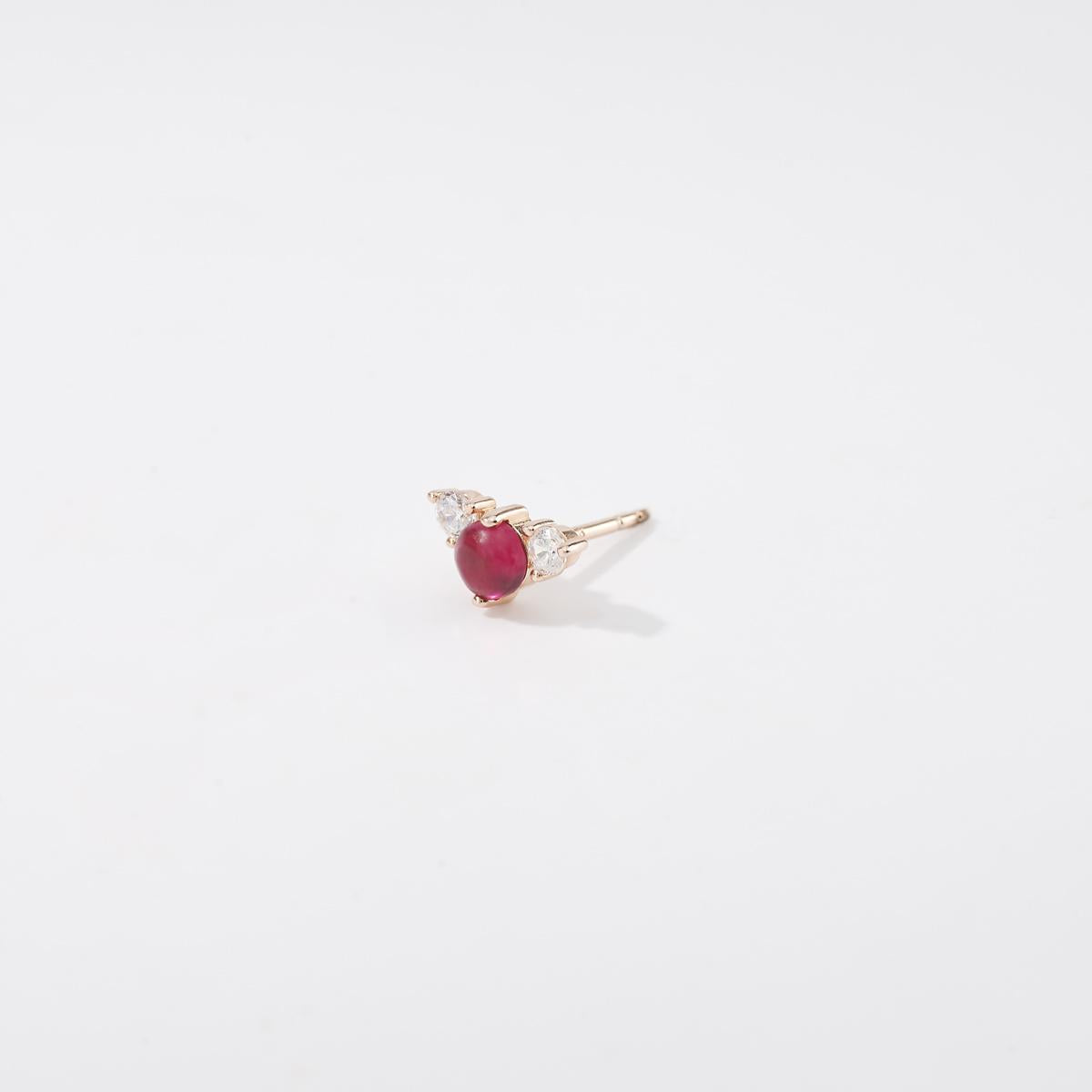 Monorecchino in argento rosato con cabochon in vetro color rubino e punti luce in zircone.