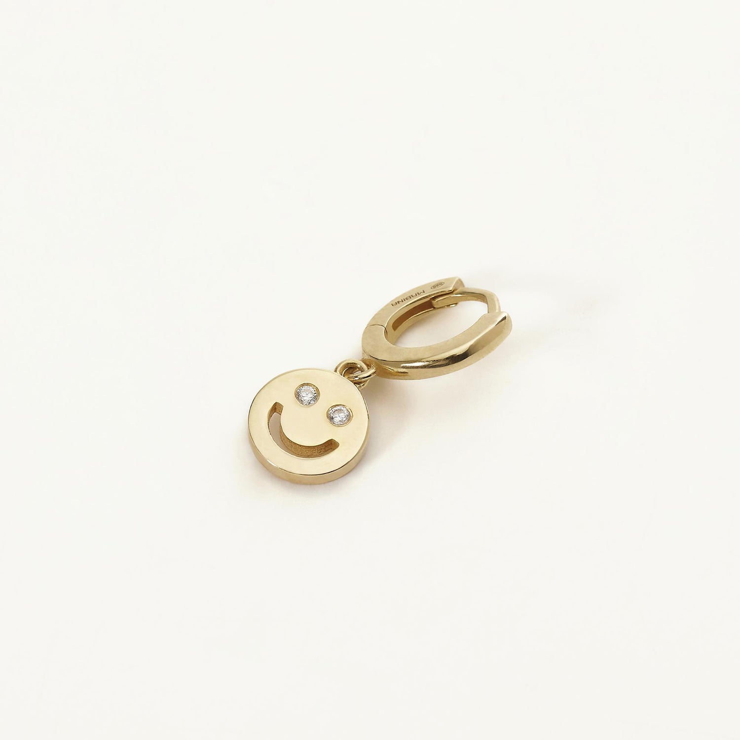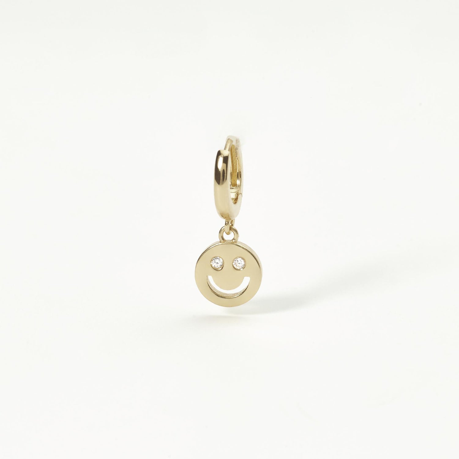 Orecchino in argento 925/°°° dorato cerchio Ø esterno 11.00 mm e ciondolo smile con zirconi Ø 1.50 mm