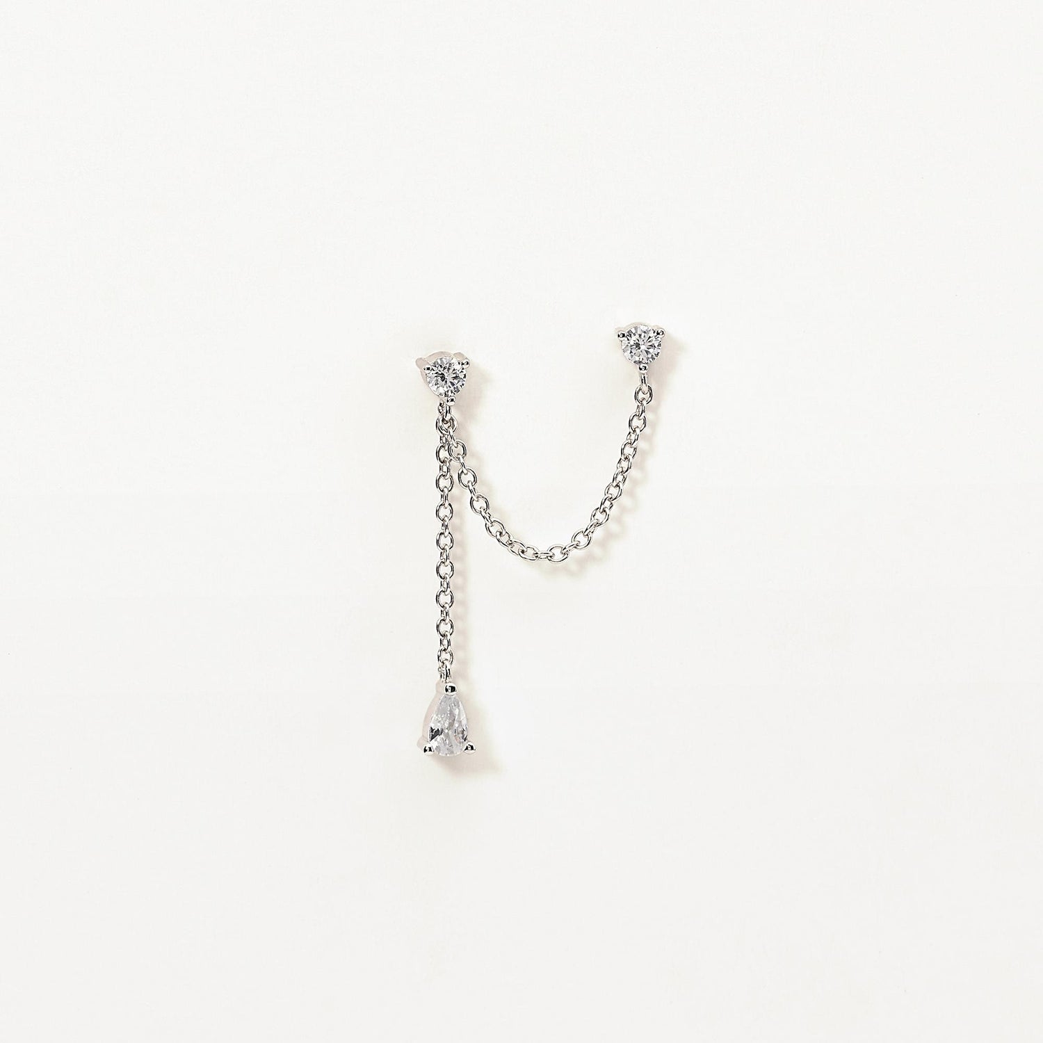 Orecchino in argento 925/°°° rosato e argento bianco , doppio buco catena rolò larghezza 1.50 mm, lunghezza 5 cm con castoni a 3 griffe, zirconi bianchi 5x3 mm e Ø 3 mm.