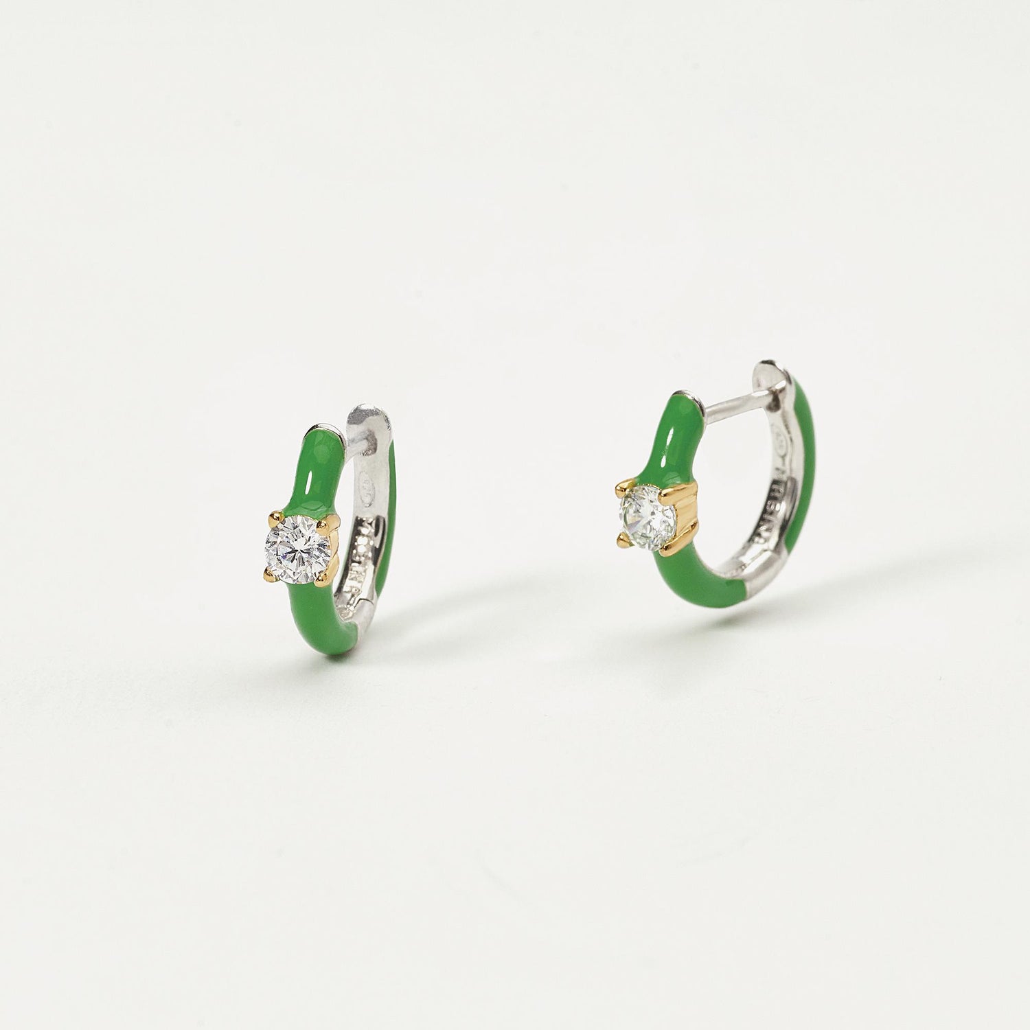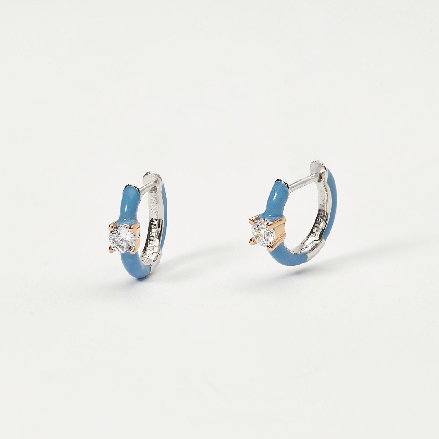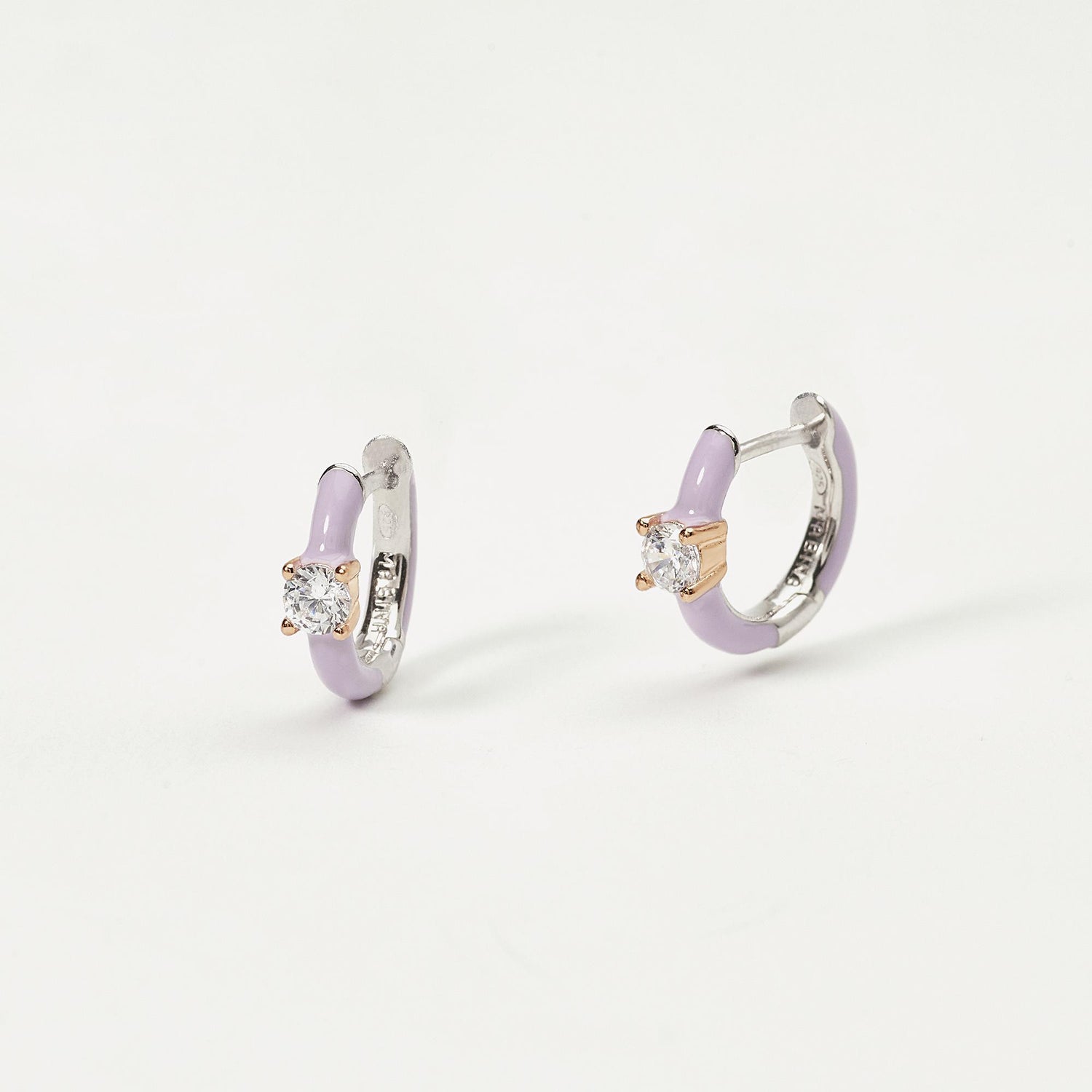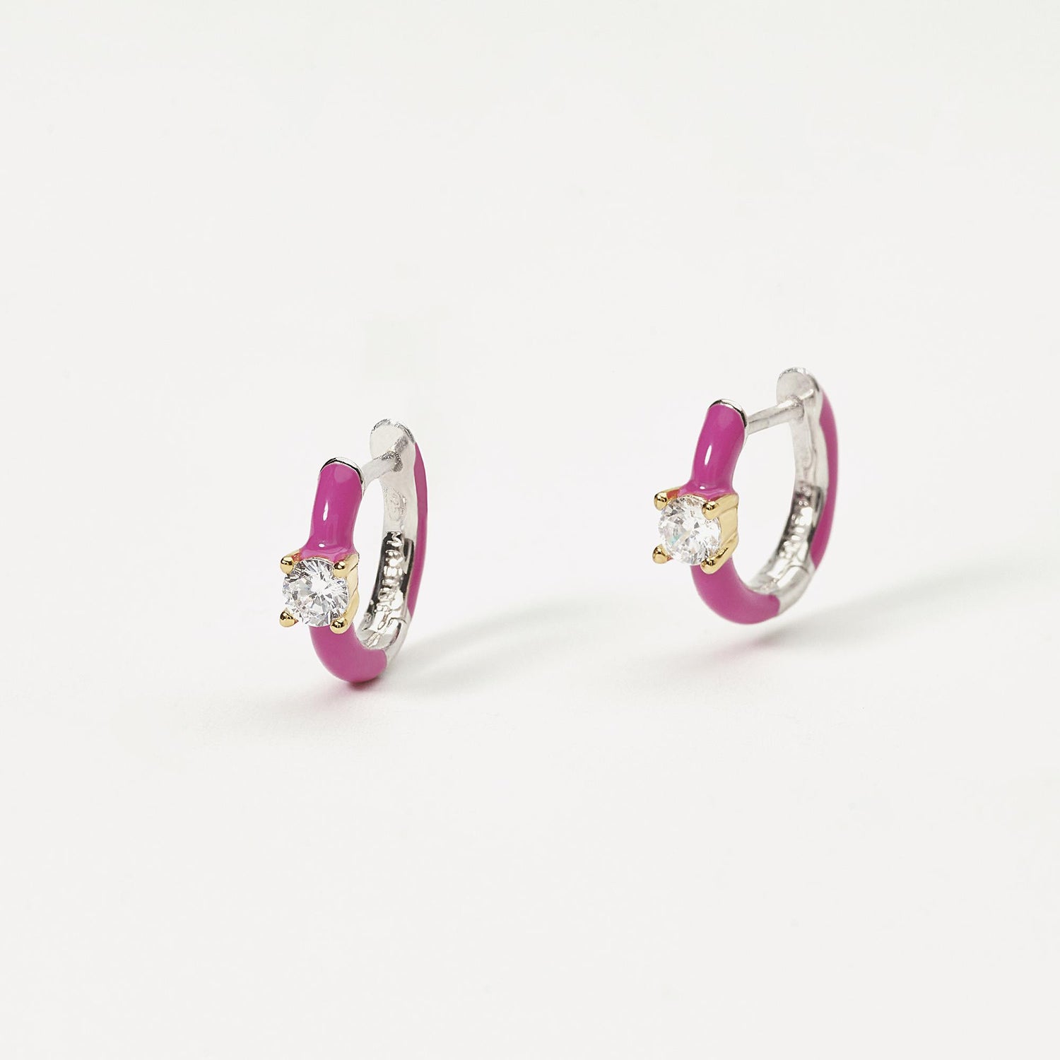 Orecchini in argento 925/°°° smaltati di colore viola, azzurro, verde, fuxia, rosso a cerchio Ø esterno 11.60 mm con castone rosato e zirconi Ø 3 mm