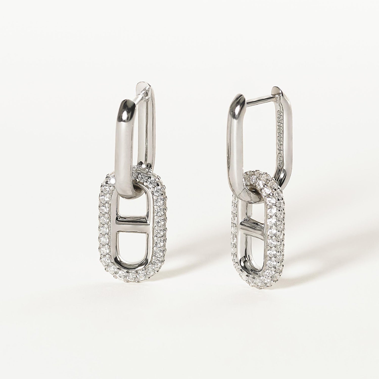 Orecchini in argento con pendente a maglia marina in pavé di zirconi.