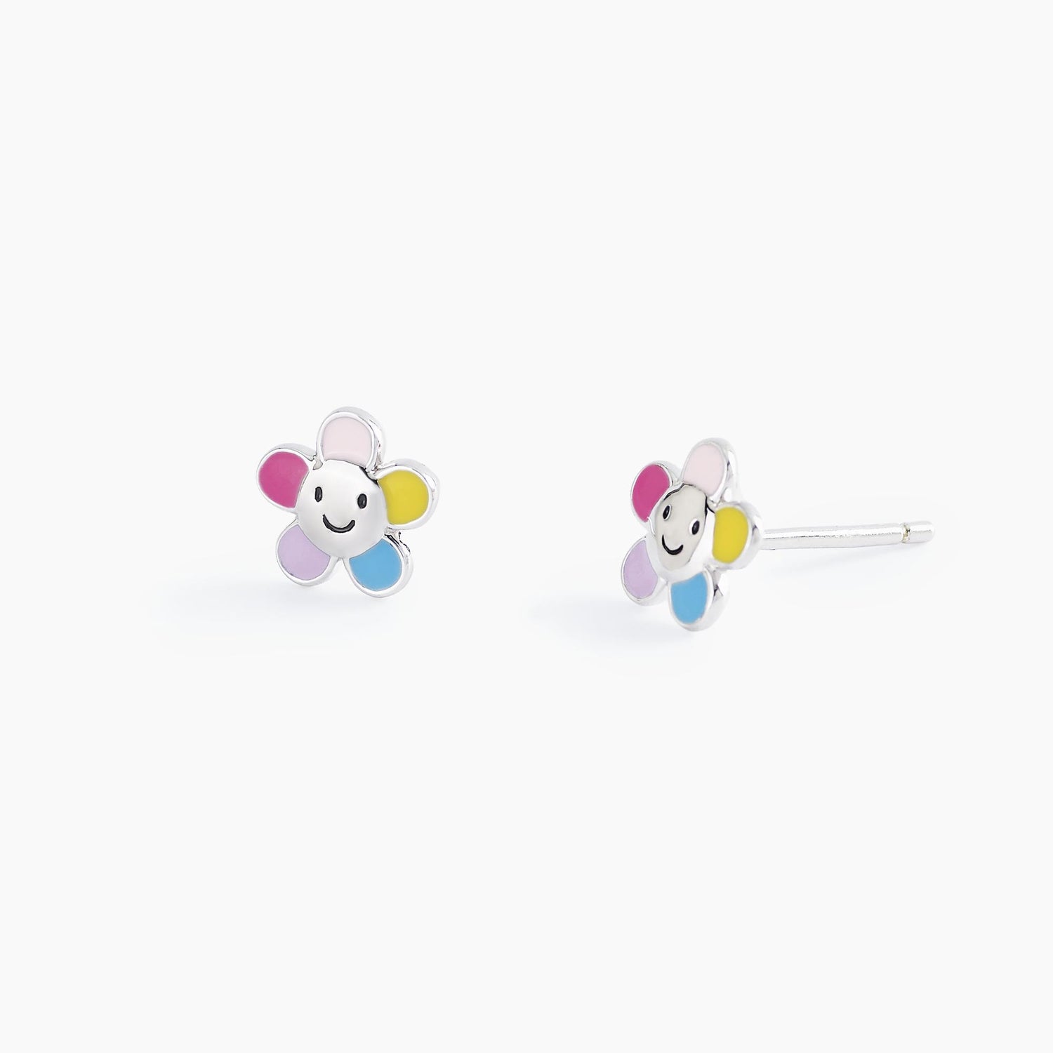 Orecchini a lobo in argento a forma di fiore smaltato multicolor.