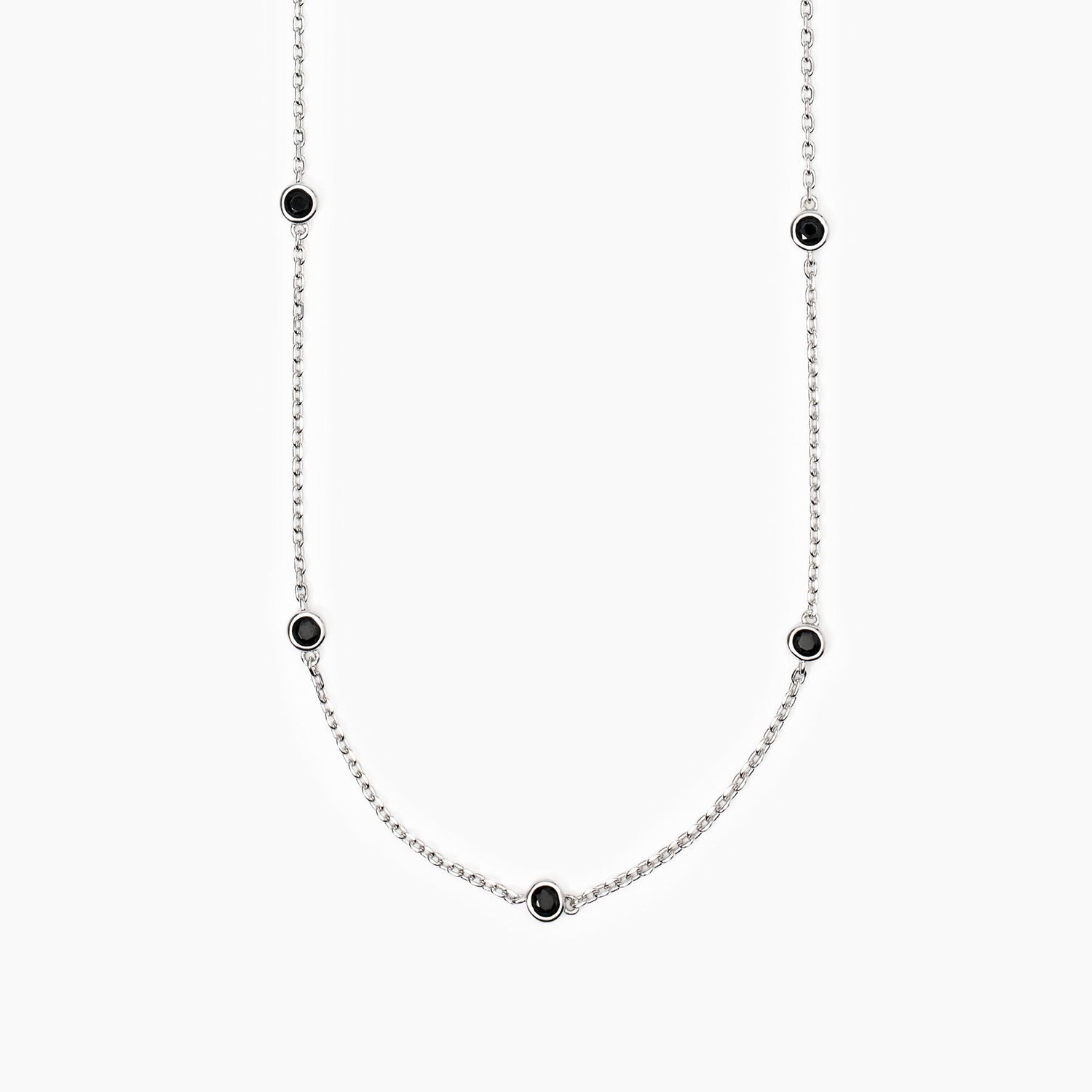 Collana regolabile da uomo in argento rodiato con catena forzatina e zirconi neri.