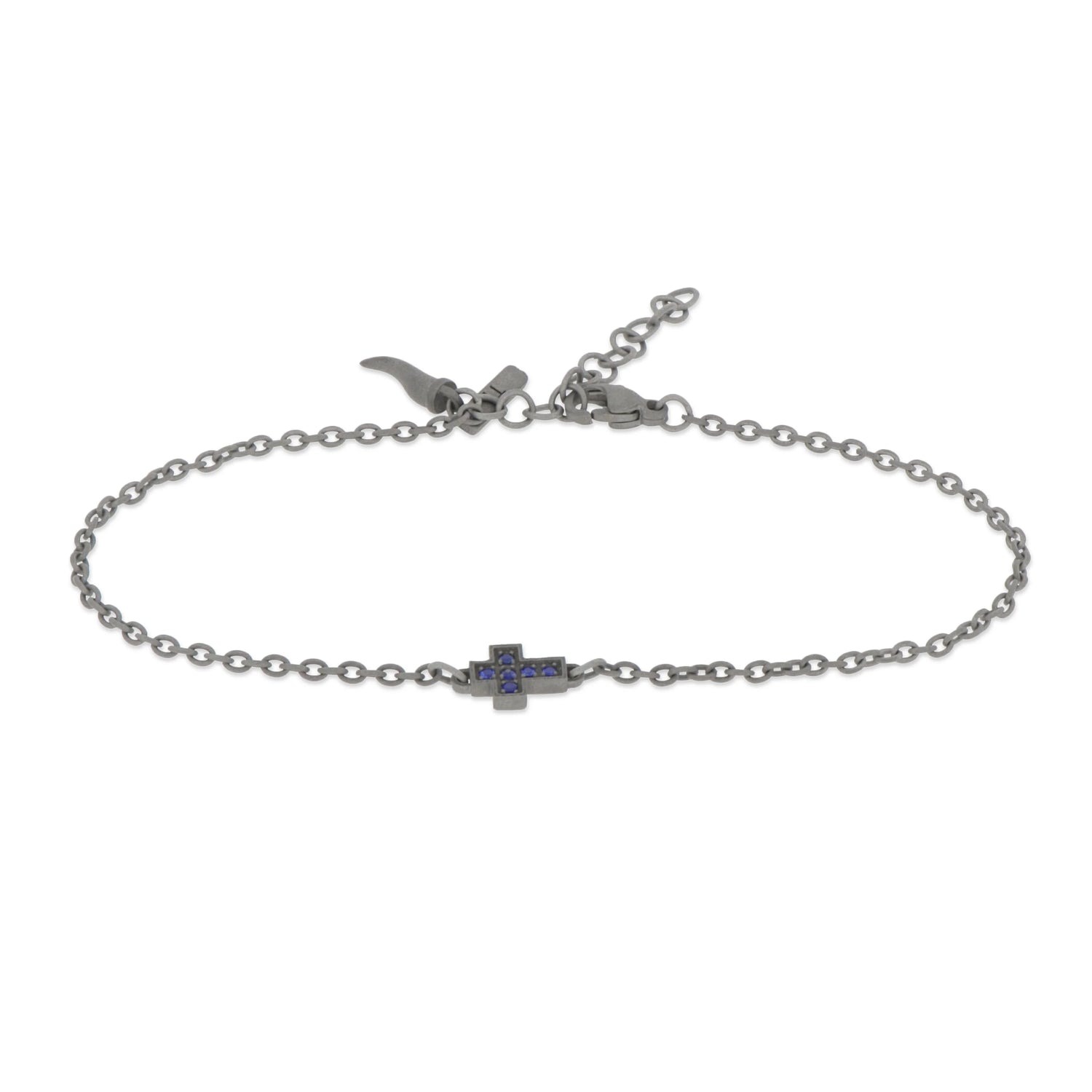 MANO -BRACCIALE IN TITANIO CON CROCE CENTRALE E ZAFFIRI BLU