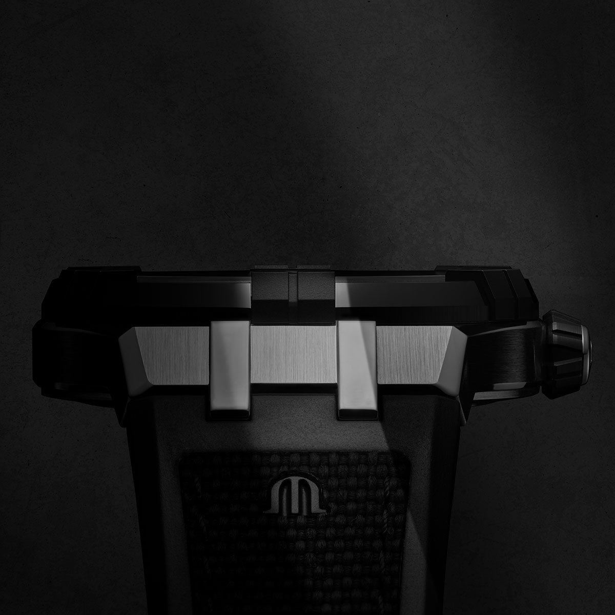 - BRACCIALE/CINTURINO: Nero, cinturino bi-caucciù con inserto in gomma testurizzata imitazione nylon, reca il logo "m" di Maurice Lacroix