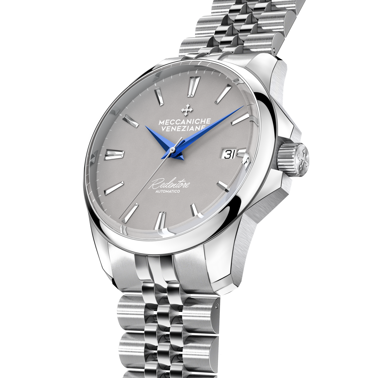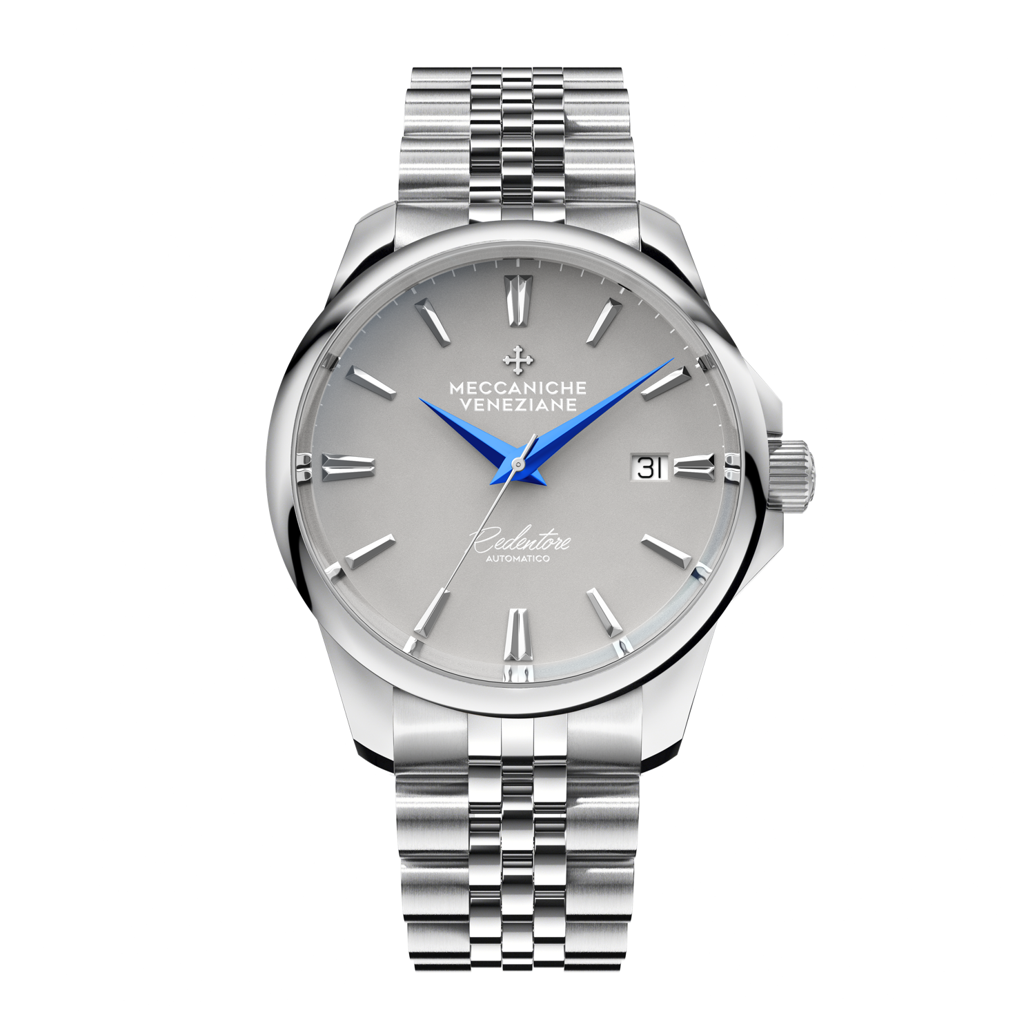 Redentore si ispira al capolavoro del famoso architetto veneziano Andrea Palladio (1508-1580), padre dello stile neoclassico. Il design classico e minimale incarna gli ideali della Repubblica Serenissima, unendo tradizione, ricerca e innovazione. Gli indici con taglio a diamante decorano splendidamente il quadrante mentre la cassa chirurgica in acciaio inossidabile 316L è lucidata a mano