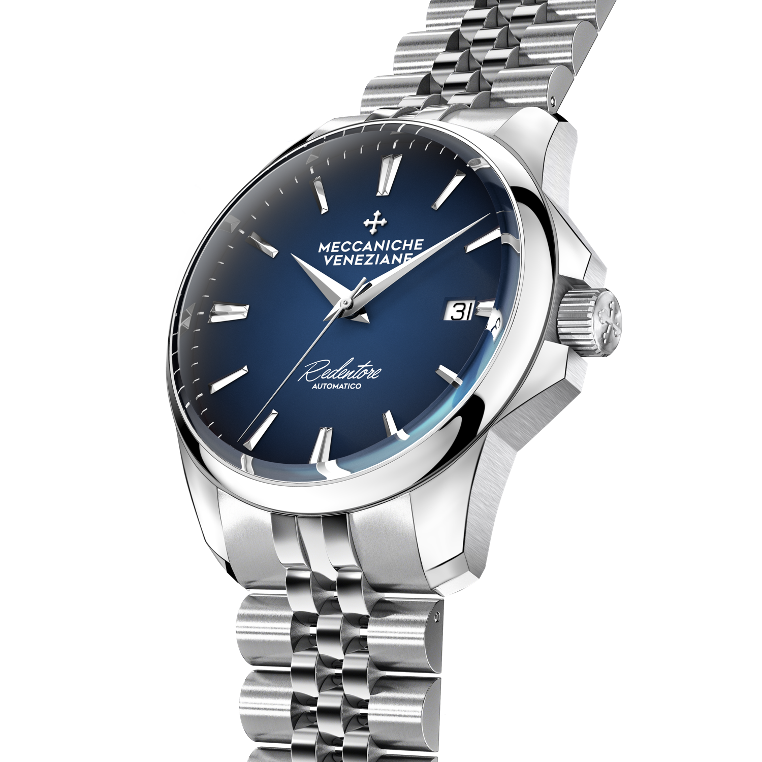 Redentore si ispira al capolavoro del famoso architetto veneziano Andrea Palladio (1508-1580), padre dello stile neoclassico. Il design classico e minimale incarna gli ideali della Repubblica Serenissima, unendo tradizione, ricerca e innovazione. Gli indici con taglio a diamante decorano splendidamente il quadrante mentre la cassa chirurgica in acciaio inossidabile 316L è lucidata a mano