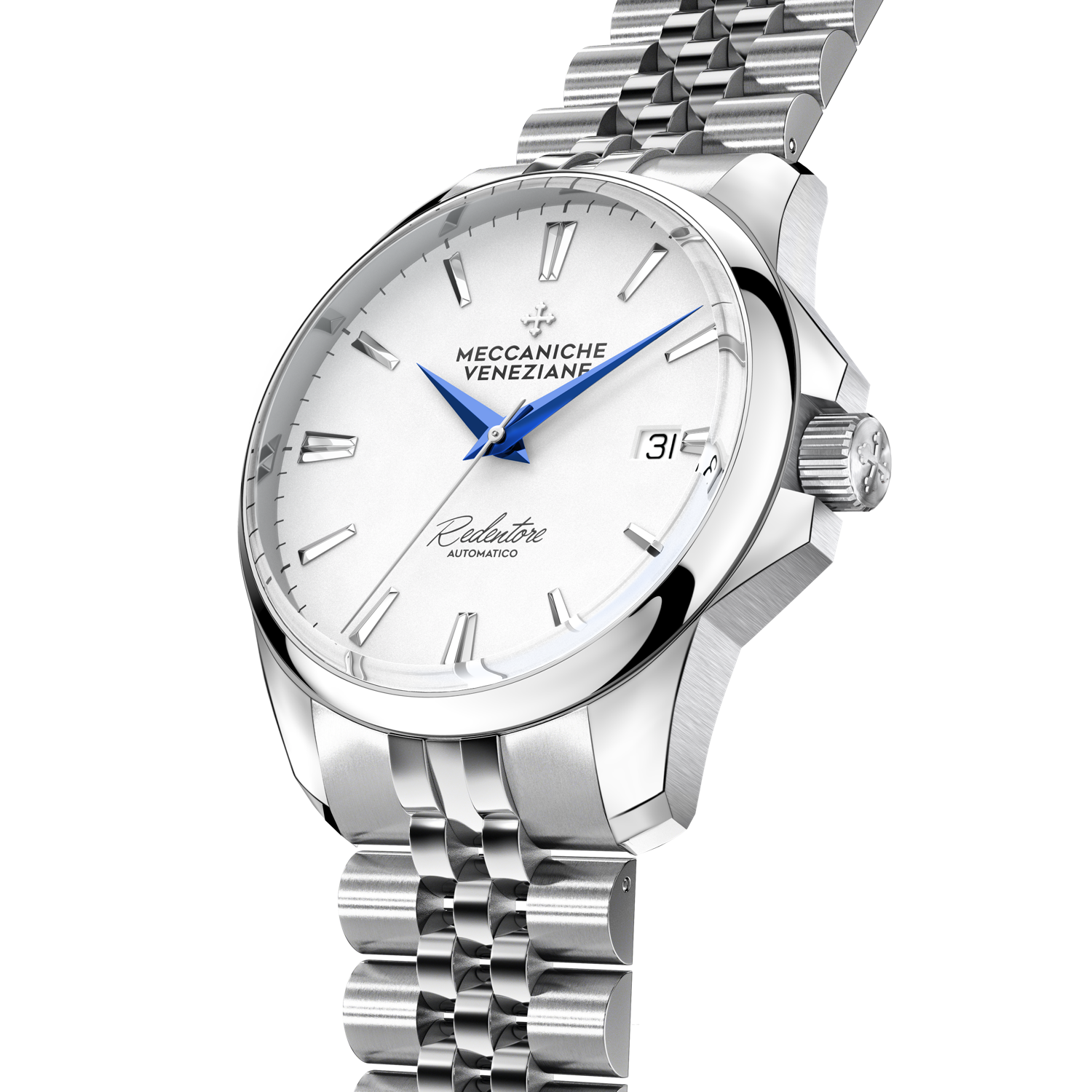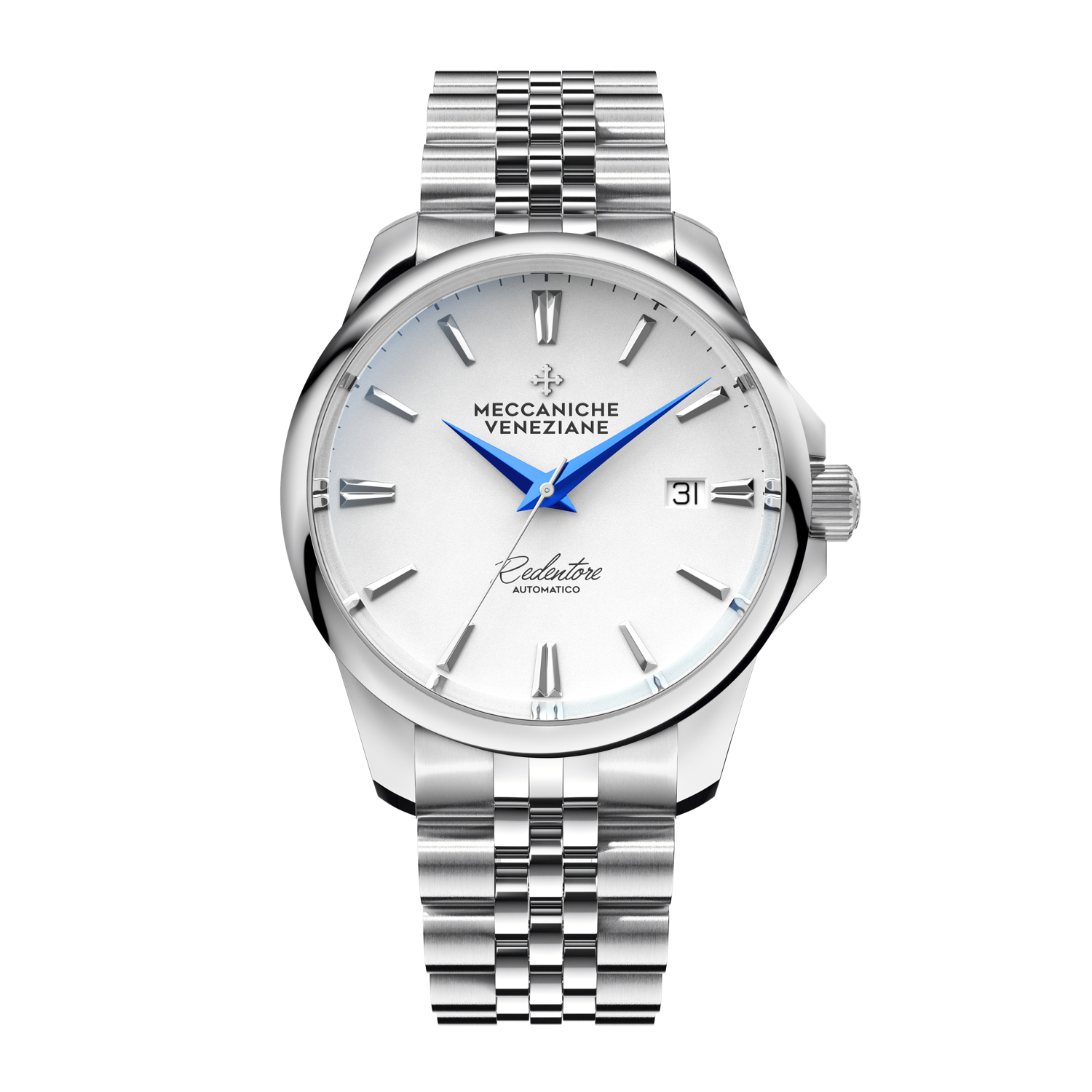 Redentore si ispira al capolavoro del famoso architetto veneziano Andrea Palladio (1508-1580), padre dello stile neoclassico. Il design classico e minimale incarna gli ideali della Repubblica Serenissima, unendo tradizione, ricerca e innovazione. Gli indici con taglio a diamante decorano splendidamente il quadrante mentre la cassa chirurgica in acciaio inossidabile 316L è lucidata a mano
