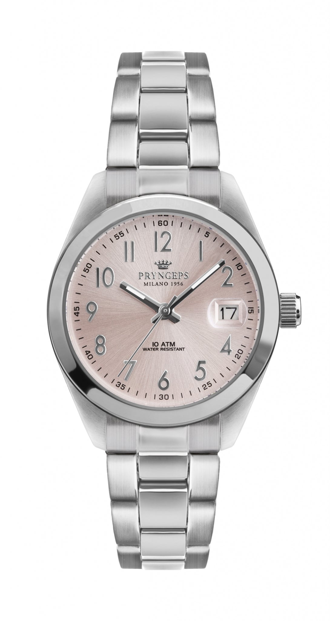 Rosa o bianco, cifre arabe in rilievo, logo in rilievo, datario al 3, solo tempo