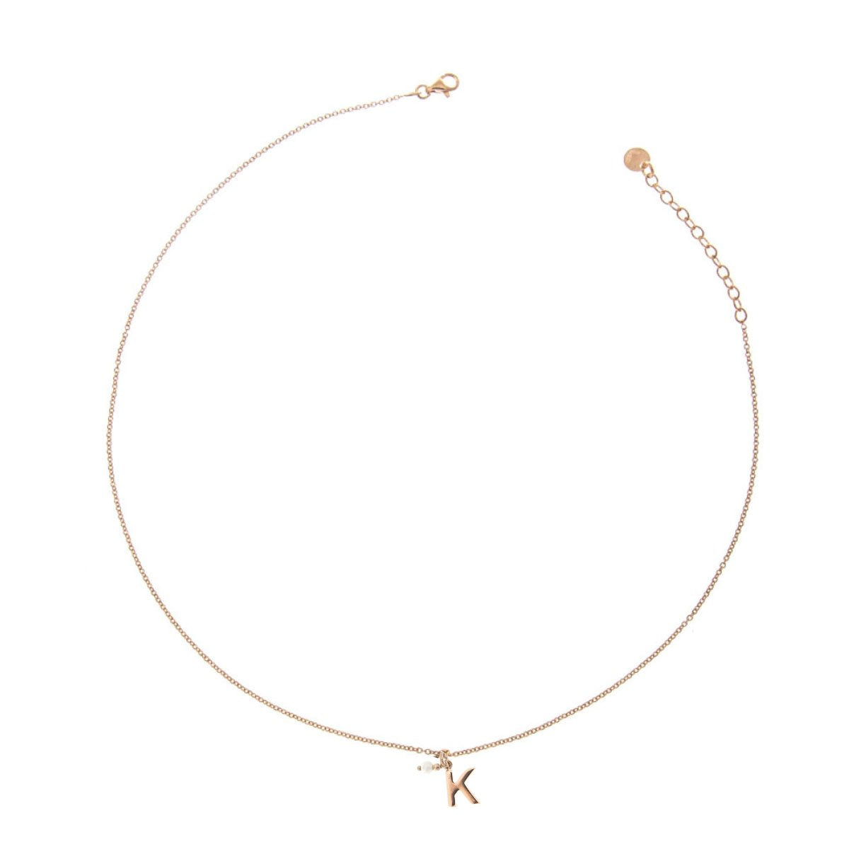 Girocollo con catenella minimal, ciondolo lettera e perlina.