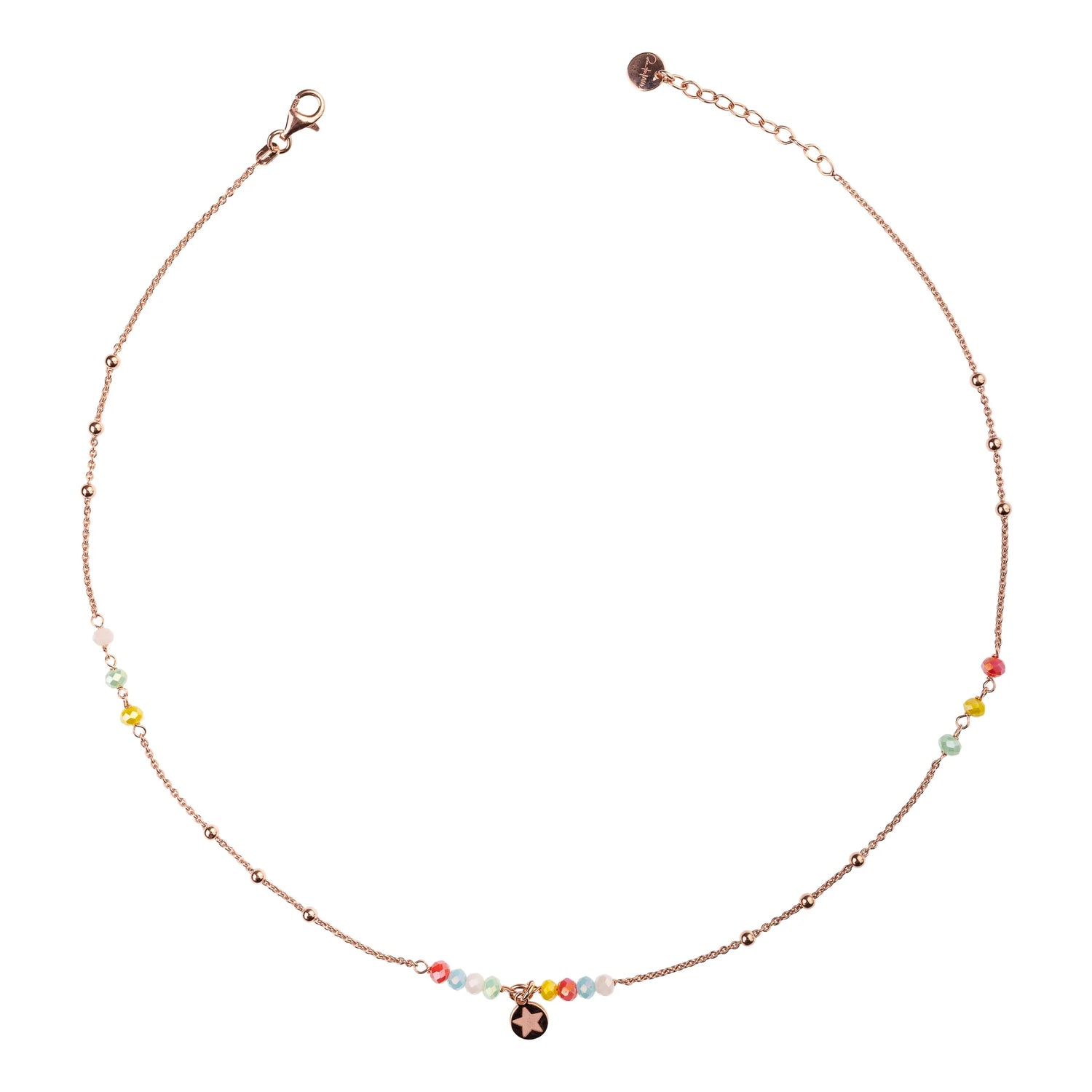 Girocollo con catenella, pietre miste colorate e medaglietta centrale con soggetto stella.
