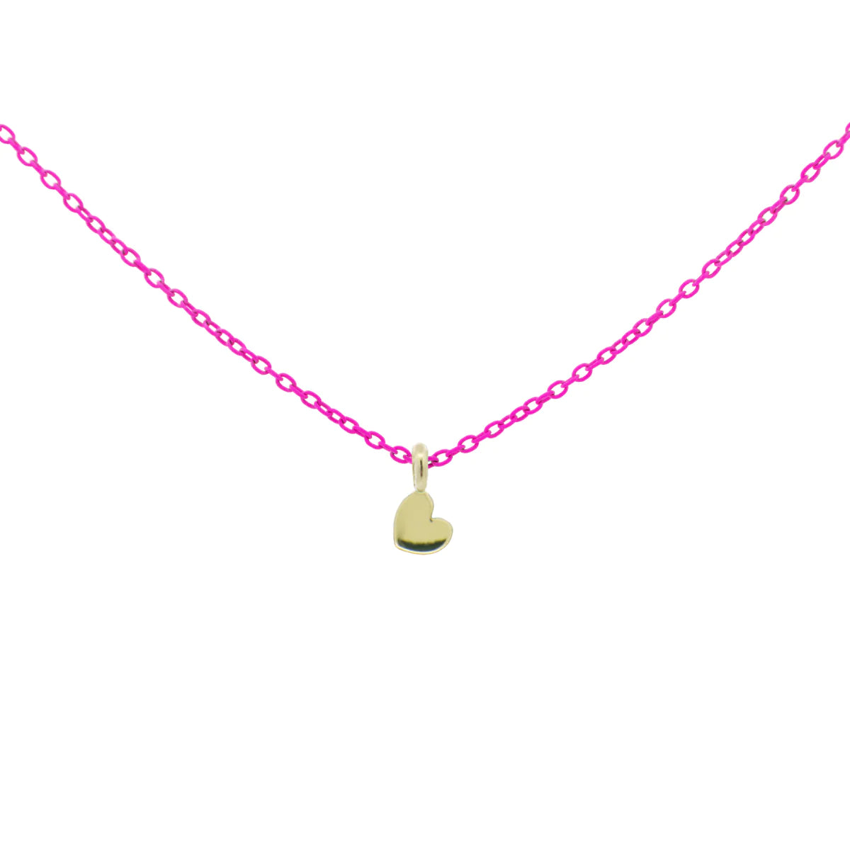 Soggetto: Cuore Colore: fucsia Fluo, verde fluo, verde scuro, rosso mattone, beige, amarena, viola, nero Lunghezza: 38 cm + 4 cm estensione Materiale: Oro 18KT, base catena argento 925 Nichel free Fatto in Italia, con amore
