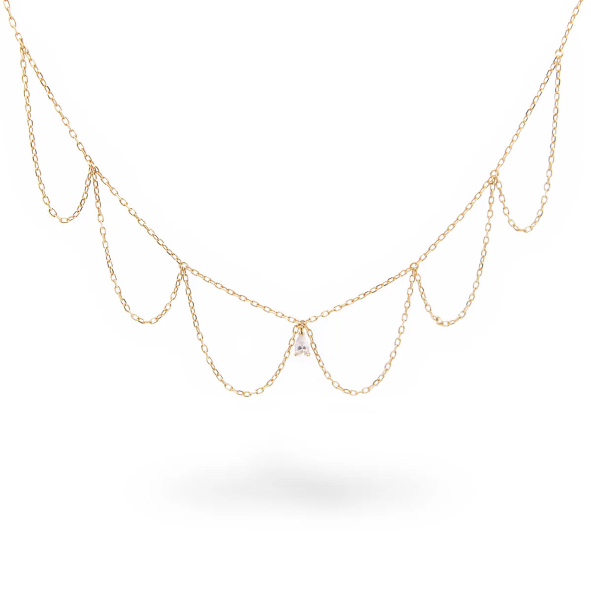 Girocollo in argento 925, con pendente centrale goccia e zircone e catena a merletto